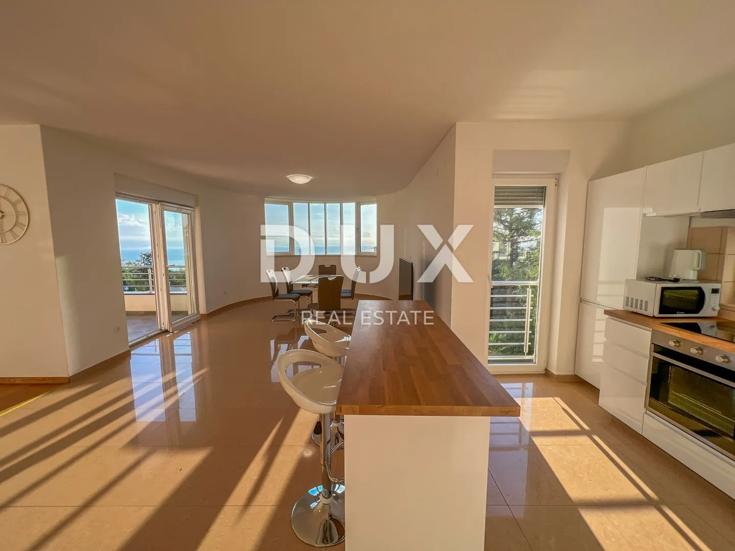 OPATIJA, IČIĆI - veći stan u novijoj gradnji s terasom, pogledom na more, garaža, blizina plaže i Opatije Predstavljamo odličnu priliku za investiciju na moru u novijoj gradnji. Radi se u većem stanu stambene površine 115m2 u stambenoj zgradi modernog karaktera s rustikalnim detaljima nedaleko od plaže Ičići i mjesta Opatije. Stan se nalazi na prvom katu i sastoji se od hodnika, dvije spavaće sobe, prostora za ugradbene ormare, velike kupaonice + 1 WC te veliki open space dnevni boravak s kuhinjom i blagovaonicom. Dnevni boravak komunicira s natkrivenom loggiom, terasa veličine 12m2 s prekrasnim pogledom na more. Uzvišena pozicija će garantirati privatnost i mir. Interesantno je što stan posjeduje veliku količinu sunca i dnevnog svjetla, a sa svakog se prozora pruža plavetnilo mora. U vlasništvo stana pripada jedno parkirno mjesto u garaži zgrade 15m2 te vanjsko parkirno mjesto. U cijelom stanu jeste podno grijanje na struju, a za hlađenje ljeti tu su klima uređaji. Zgrada koja posjeduje odličnu okućnicu s egzotičnim raslinjem, nalazi se samo dvije minute vožnje do plaže Ičići, a pješice nizbrdo traje doslovno 10 minuta. Pristup zgradi je izvrstan, a nalazi se u izuzetno kvalitetnom susjedstvu Ičića. Vožnja do centra Opatije jeste 8 minuta. Ova prekrasna nekretnina prodaje se u potpunosti novo namještena i spremna je za useljenje. Fantastična prilika za investiciju u veću nekretninu na Opatijskoj rivijeri. Poštovani klijenti, agencijska provizija naplaćuje se u skladu s Općim uvjetima poslovanja www.dux-nekretnine.hr/opci-uvjeti-poslovanja ID KOD AGENCIJE: 25577 Marko Šutanovac Agent s licencom Mob: +385 91 189 8332 Tel: +385 91 480 8808 E-mail: marko@dux-nekretnine.hr www.dux-opatija.com