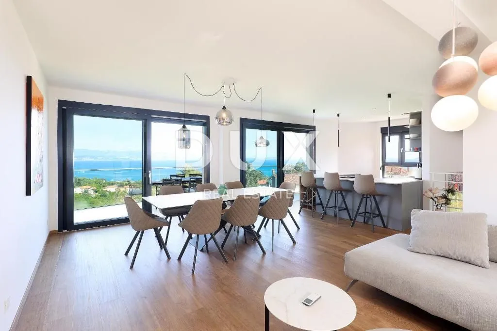 OPATIJA, IKA - luksuzni dvoetažni stan na mirnoj lokaciji s dvije terase i panoramskim pogledom na more U DUX ponudi izdvajamo luksuzni stan za prodaju u novogradnji, smješten u malom slikovitom mjestu Ika. Riječ je o modernom dvoetažnom stanu površine 135 m². Velika prednost ovog stana su dvije prostrane natkrivene terase od 15 m² s pogledom na more. Prva etaža ovog elegantnog stana sastoji se od prostranog hodnika, velikog open space dnevnog boravka koji je povezan s kuhinjom i blagovaonicom, a na toj etaži nalazi se i dodatni WC. Dvije velike klizne stijene omogućuju da stan bude ispunjen svjetlom, a ujedno vode na terasu koja pruža prekrasan panoramski pogled na Kvarnerski zaljev. Stepenicama se dolazi na drugu etažu gdje se nalaze dvije potpuno opremljene spavaće sobe s king size krevetima, dvije kupaonice i još jedna natkrivena terasa s pogledom. Stan je opremljen dizajnerskim namještajem u neutralnim tonovima bež, drvenih i plavih nijansi, dok su kupaonice uređene talijanskim pločicama u bež tonovima. Ima energetski razred A+ i podno grijanje, što osigurava ugodnu temperaturu tijekom cijele godine. Zgrada se sastoji od ukupno 4 stana, a ovaj stan uključuje 3 privatna parkirna mjesta. Stan također ima pristup krovnoj terasi, ali isključivo preko mobilnih stepenica koje izlaze iz stropa, te je to jedini pristup terasi. Važno je naglasiti da je krovna terasa popločana keramikom, izolirana i ograđena. Na krovnoj terasi nalazi se priprema za vodu, struju i odvodnju. Smješten je u mirnoj, sporednoj ulici iznad plaže Ika, okružen zelenilom, svega 450 metara zračne linije do mora, što je vožnjom samo dvije minute. Opatija je udaljena 5 minuta vožnje, dok je Lovran na 3 minute. Za dogovaranje posjete nekretnine nazovite agenta s povjerenjem - konzultacija na njemačkom jeziku moguća. Poštovani klijenti, agencijska provizija naplaćuje se u skladu s Općim uvjetima poslovanja: www.dux-nekretnine.hr/opci-uvjeti-poslovanja ID KOD AGENCIJE: 37330 Marko Šutanovac Agent s licencom Mob: +385 91 189 8332 Tel: +385 91 480 8808 E-mail: marko@dux-nekretnine.hr www.dux-opatija.com