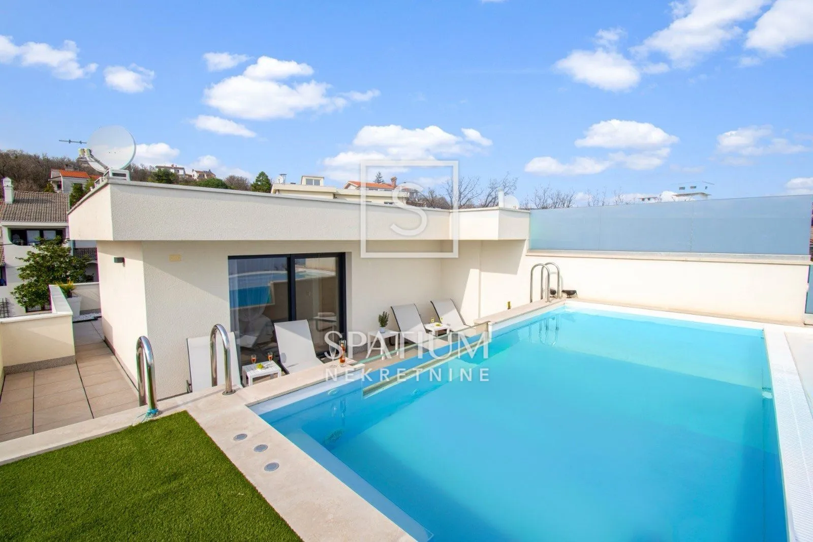 OPATIJA, POBRI, u ponudu smo dobili fantastičnu dvojnu kuću smještenu na mirnoj i tihoj lokaciji s panoramskim pogledom na more. Ukupna površina kuće je 250 m2, a smještena je na parceli od 370 m2. Sastoji se od: podruma - garaža, prostor za konobu i strojarnica prizemlje - 2 spavaće sobe s kupaonicama, teretana, vešeraj i terasa 1. kat - veliki open - space dnevni boravak s kuhinjom i blagovaonicom, spavaća soba, kupaonica, spremište i velika terasa s pogledom na more 2. kat - velika spavaća soba s kupaonicom, izlaz na veliku krovnu terasu, "Infinity" bazen U cijeloj kući je podno grijanje te u svakoj prostoriji klima uređaj, aluminijska stolarija s kliznim stijenama i električnim podizačem roleta, protuprovalna vrata, klime, a na podovima su pločice u imitaciji mramora dok su stepenice za prizemlje od mramora iste nijanse. Oko cijele kuće popločano je kamenom tlakavcem, a ispred kuće ima mjesta za 2 automobila, garaža za 1 auto, dok se na okućnici može parkirati više auta. Opatija, prekrasan primorski grad na Jadranskom moru i poznato lječilište 19. stoljeća, popularna je destinacija za turiste iz cijelog svijeta. Grad je okružen neponovljivim prirodnim ljepotama. Nalazi se ispod planine Učke koja je omiljeno odredište planinara i izletnika, na prijelazu je između zelene istarske regije i primorja te čini savršenu ravnotežu krajolika. Iz grada se pruža prekrasan pogled na more i obližnje otoke Krk i Cres. Okružena je šarmantnim povijesnim gradićima uskih uličica i bogate povijesti. Opatiju krasi velik broj nesvakidašnjih znamenitosti, veliki broj plaža, čisto more, a njene gradske ulice prošarane su kućama zanimljive arhitekture i vilama iz habsburškog doba. Za sve ostale informacije obratite se s povjerenjem. Leo Cerniar agent s licencom +385 95 901 4093 leo@spatium.hr Spatium nekretnine + 385 51 272 903 info@spatium.hr ID KOD AGENCIJE: 3118 Leo Cerniar Agent s licencom Mob: +385 95 901 4093 Tel: 051 272 903 E-mail: leo@spatium.hr www.spatium.hr Rok Lulić Agent s licencom Mob: +385 91 220 6204 Tel: +385 51 272 903 E-mail: rok@spatium.hr www.spatium.hr