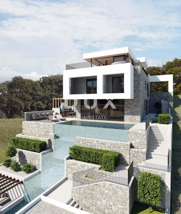 OPATIJA - luksuzna moderna villa 300m2 s bazenom i pogledom na more + uređena okućnica 650m2. Smart Villa u Opatiji- ova moderna luksuzna vila koju nudimo na prodaju nalazi se u prekrasnoj Opatiji, samo 200 m od mora, marine i plaže. Smještena na kaskadnom terenu, na parceli od 670 m, vila pruža očaravajući pogled na more i kvarnerske otoke. Vila odiše elegancijom i skladnim interijerom i eksterijerom. Stambena površina vile je 300m2 i prostire se na tri etaže. Dekoracija vile podijeljena je u 3 zone: zonu za zabavu, dnevnu zonu i lounge zonu. Ova moderna luksuzna vila koju nudimo na prodaju nalazi se u prekrasnoj Opatiji, samo 200 m zračne udaljenosti od mora i plaže. Smještena na kaskadnom terenu, na parceli od 670 m, vila pruža očaravajući pogled na more i kvarnerske otoke. Vila odiše elegancijom i skladnim interijerom i eksterijerom. Karakteristike pametne Ville: Dnevna zona se nalazi na prizemlju i prvom katu. Prizemlje je sastavljeno od dnevnog boravka, kuhinje, blagovaone uređeno po open space konceptu, spremišta te kupaone za tušem. Tu se nalazi i jedna dodatna soba koja može biti radna soba ili dodatna spavaća soba. Dnevnim boravkom dominira velika staklena stijena na električno otvaranje koja omogućava panoramski pogled iz dnevnog boravka. Vanjskim dijelom prizemlja dominira bazen od 30 m2 sa sustavom protustrujnog plivanja i sunčalištem. Tu se također nalazi ljetna kuhinja sa vanjskom blagovaonom. Veliki bazen u prizemlju i manji bazen u suterenu povezuje vodopad stvoren od sustava bazenske tehnike koji povezuje ta dva bazena što omogućuje da voda konstanto cirkulira u vodopadu. Na prvom katu se nalazi master bedroom sa kupaonom i terasom. Postoje još dvije spavaće sobe svaka sa vlastitom kupaonom, a jedna ima i vlastitu terasu. Na vrhu vile nalazi se lounge zona sa whirlpoolom koja je termo zatvorena staklenim stijenama te se može koristiti i u ljetnim i zimskim periodima. Dizajnerski kamin daje poseban ugođaj upravo u zimskim mjesecima. U ljetnim mjesecima taj prostor može biti otvorena terasa opremljena udobnim foteljama i kaučem. U toj zoni se također nalazi zasebna kupaona, manja kuhinja- bar i sunčalište. U podrumu vile postaji dodatni prostor opremljen audio- vizualnim sustavom i sustavom grijanja-hlađenja koji može bit prostor za zabavu, kino dvorana, vinski podrum ili spremište. Vila raspolaže integriranim Smart home sustavom KNX. Pametne kuće nude slijedeće prednosti u odnosu na konvencionalne domove: uštede energije, upravljanje i kontrola prostora na daljinu, sigurnost, povećanje vrijednosti Nekretnine, komfor i lifestyle. Svi sustavi vile (grijanje- hlađenje, elektro-sustav, audio-vizualni sustav, senzorski alarm, videonadzor, sustav pametne kuće, koji sustavi pokrivaju sve prostorije vile) jesu integrirani u jedan izvor upravljanja; KNX sustav. Sama oprema vile i instalacije biti će od renomiranih talijanskih proizvođača. Pa tako vrata će biti Barausse, eletro sustav, lampe i ostalo Groppi i Viabizzuno, špine, tuševi, kade REXA. Vanjska stolarija i staklene stijene će biti Heroal. Vila ima 4 parkirna mjesta te stanicu za punjenje električnih vozila. Puno su pažnje posvetilo unutarnjem uređenju vile, ali i cjelokupnom razvoju projekta gradnje pazeći na svaki detalj. Zahvaljujući impresivnoj opremljenosti, u ovoj pametnoj vili svatko će pronaći nešto za sebe bilo da se radi o sportašima, poslovnim ljudima ili zaljubljenicima u film i glazbu jer je budućem vlasniku i njegovim gostima na raspolaganju sav potreban sadržaji za zabavu i opuštanje od ubrzanog ritma modernog života. Parcela je u potpunosti ograđena kamenim zidom koji pruža mir, intimu i zaklon od znatiželjnih pogleda. Svakako lijepa nekretnina za luksuzan obiteljski život, ali pogodna i kao investicija u vidu elitnog turizma. Ova nekretnina je udaljena 220m zračne linije od mora, odnosno 650m pješke (7 min). OPATIJA: Opatija, predivan obalni grad smješten na Jadranskom moru poznato je turističko odredište za turiste iz cijelog svijeta. Grad je okružen prekrasnom prirodom, u podnožju planine Učka. Iz nekretnina u Opatiji pruža se neprocjenjivi pogled na more i okolne otoke Krk i Cres. Opatija je okružena šarmantnim malenim gradovima s starim kućama smještenim u uskim uličicama bogate povijesti. Ulice grada Opatije čine nekretnine koje se ističu specifičnom arhitekturom te vilama koje datiraju iz habsburškog perioda. Veliki izbor plaža, kristalno čistog mora i raznovrsne turističke usluge ključni su faktori zbog kojih je Opatija svršena turistička destinacija prepoznata od strane susjednih zemalja kao odličan investicijski izbor. Cijene nekretnina na ovom području rastu, popunjenost iznajmljivanja je izvrsna što je uzrokovalo povrat investicije od 5% do 10% i privlačenje inozemnih ulagača. Poštovani klijenti, agencijska provizija naplaćuje se u skladu s općim uvjetima poslovanja: www.dux-nekretnine.hr/opci-uvjeti-poslovanja ID KOD AGENCIJE: 30998 Patrik Hrštić Agent s licencom Mob: +385 91 270 3979 Tel: +385 91 480 8808 E-mail: patrik@dux-nekretnine.hr www.dux-opatija.com Denis Kaštelan Agent s licencom Mob: +385 91 950 4277 Tel: +385 91 480 8808 E-mail: denis@dux-nekretnine.hr www.dux-opatija.com