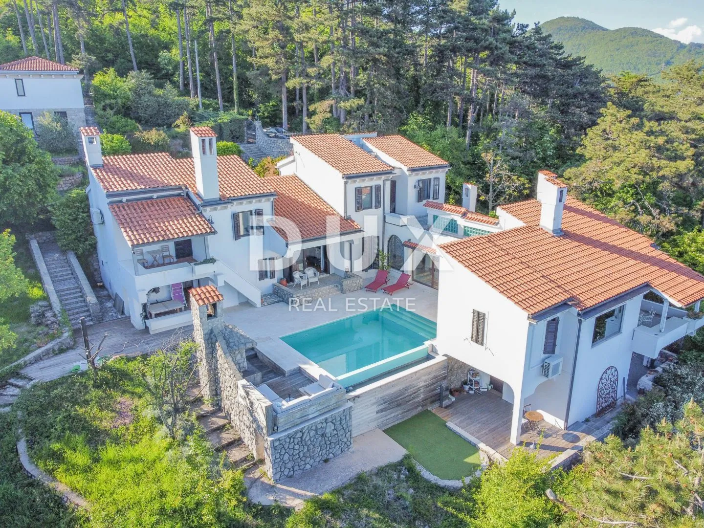 OPATIJA RIVIERA - privatna vila posebnog rasporeda s bazenom i panoramskim pogledom na more U ekskluzivnoj ponudi nalazi se privatna vila s bazenom, s 5 spavaćih soba, pogledom na more, parkingom u mirnom naselju okružena zelenilom. Fantastična je ovo vila koja nudi ugodan boravak za veliku obitelj, a postoji mogućnost i turističkog najma budući da se sastoji od 5 spavaćih soba od kojih svaka ima lijep raspored i izlaz na balkon ili terasu, također vrlo su komotno i toplo uređene. Osim toga, vila ima 5 decentno uređenih kupaonica, što omogućuje potpunu privatnost i komoditet. Ističemo prekrasan glavni open space prostor dnevni boravak koji je idealan za više aktivnosti od samo druženja, a povezan je i s prostranom blagovaonicom i kuhinjom, pritom cijeli prostor ima prekrasan i nesmetan pogled na Kvarnerski zaljev, a iz blagovaonice se izlazi na šarmantni balkon na kojem zastaje dah od pogleda. Iz lijepo uređene i potpuno opremljene kuhinje izlazi se na terasu s bazenom. Osim glavnog open space dnevnog boravka s kuhinjom i blagovaonicom, vila ima još jedan odvojen dnevni boravak s kuhinjom i blagovaonicom, što omogućuje puno komoditeta. Prekrasna vegetacija i mir, uz pjev ptica i još ljepši pogled na Kvarnerski zaljev zaista su aduti ove privatne vile s bazenom, a osim toga ističemo i idiličan roštilj uz prostor za druženje koji se nalazi pored bazena. Vili pripada i parking uz 2 garažna mjesta površine 36 m2 i 2 nenatkrivena mjesta. Savršena je ovo prilika za kupnju vile na Opatijskoj rivijeri s prekrasnim pogledom i idealnom kako za ugodan život tako i turistički najam. Poštovani klijenti, agencijska provizija se naplaćuje u skladu s Općim uvjetima poslovanja. https://www.dux-nekretnine.hr/opci-uvjeti-poslovanja ID KOD AGENCIJE: 29865 Marko Šutanovac Agent s licencom Mob: +385 91 189 8332 Tel: +385 91 480 8808 E-mail: marko@dux-nekretnine.hr www.dux-opatija.com