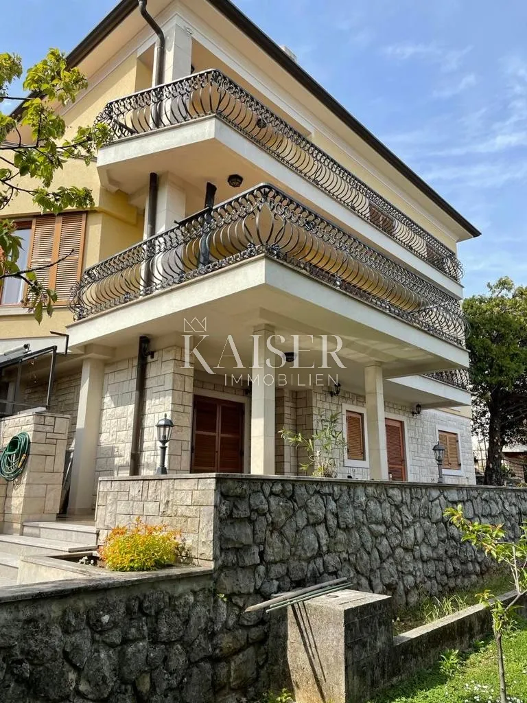 Kaiser Immobilien predstavlja izuzetno kvalitetno građenu obiteljsku vilu na vrlo atraktivnoj lokaciji u naselju Volosko, samo 200 metara zračne linije od obale. Stambena površina vile je 280 m2 i uključuje prizemlje, visoko prizemlje i prvi kat. U prizemlju se nalazi velika prostorija za druženje, sanitarni čvor i sauna. Glavni ulaz u vilu nalazi se na razini visokog prizemlja s verandom, ulaznim hodnikom, kuhinjom, blagovaonicom, dnevnim boravkom, wc-om, kupaonicom i praonicom. Impresivno stubište od punog granita vodi nas na prvi kat s 4 spavaće sobe, wc-om i kupaonicom. Sve etaže vile imaju velike balkone i terase s prekrasnim pogledom na more. U izgradnji vile korišteni su najekskluzivniji materijali i oprema strane provenijencije. Vila također ima garažu za 2 automobila i otvorenu konobu sa kaminom i roštiljem. Vila je opremljena centralnim grijanjem na lož ulje i solarnim kolektorima. ID KOD AGENCIJE: 101-035 Jirka Nerad Agent s licencom u posredovanju u prometu nekretnina Mob: +385911632884, +385995677888 E-mail: jirka@kaiser-immobilien.hr www.kaiser-immobilien.hr