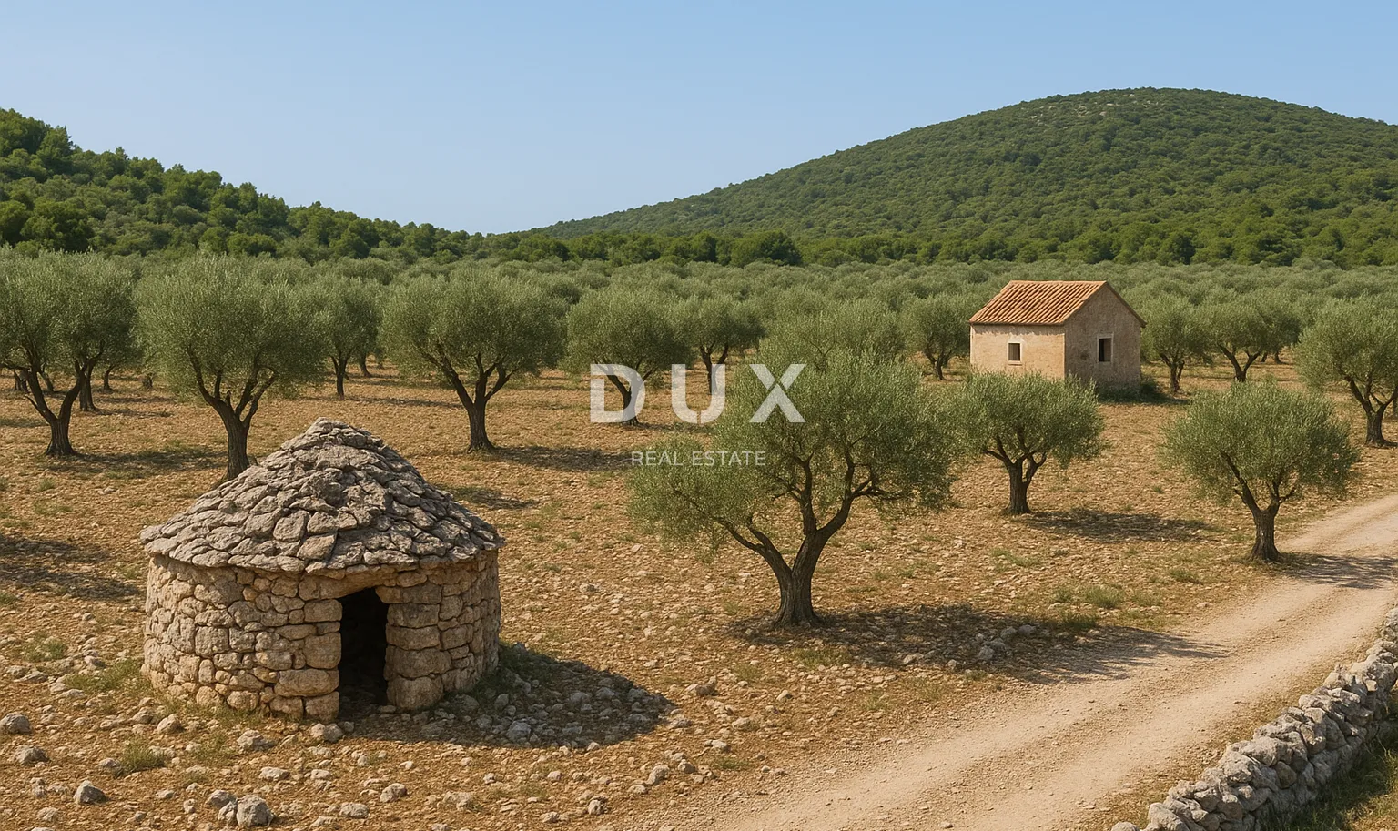 OTOK BRAČ - Uređeni maslinik, 200 maslina, bunja i poljoprivredna kućica Na prodaju je održavani maslinik površine 14738 m2, s oko 200 stabala maslina (oblica i levantinka). Godišnji urod do 7000 kilograma. Maslinik je smješten pristupačnom terenu, osunčan je, a do njega vodi svega 3 km makadamskog puta od glavne ceste. Na zemljištu se nalaze kamena bunja (tradicionalna kružna suhozidna građevina) te kućica od 15 m2 za potrebe poljoprivrednog alata. Zemljište ima uredno vlasništvo. Idealno za maslinare i ljubitelje maslina. *Prikazana slika je simbolična i ilustrativnog karaktera, služi za bolju vizualizaciju potencijala zemljišta. *** Poštovani klijenti, agencijska provizija naplaćuje se u skladu s Općim uvjetima poslovanja www.dux-nekretnine.hr/opci-uvjeti-poslovanja ID KOD AGENCIJE: 42854 Iva Mršić Agent s licencom Mob: +385 91 575 9388 Tel: +385 91 480 8808 E-mail: iva@dux-nekretnine.hr www.dux-krk.com