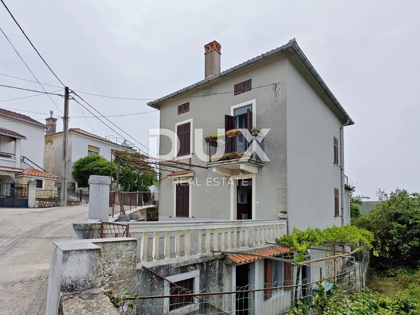 OTOK KRK, DOBRINJ - Samostojeća kuća s velikim potencijalom U suterenu kuće nalazi se konoba, WC, stojarnica, šterna, ljetna kuhinja i radionica s posebnim ulazom. Suteren je prizemljem povezan unutarnjim i vanjskim stepeništem. U prizemlju se nalazi dnevni boravak, spavaća soba, kuhinja i kupaonica. Na prvom kazu nalaze se dvije spavaće sobe, od kojih jedna ima izlaz na veliku terasu s pogledom na more, te spremište koje se može preureditit u dodatnu kupaonicu. Na katu također ima i mali balkon. Visoko potkrovlje moguće je iskoristiti dodavši još jednu sobu s kupaonicom. Na okućnici od 335 m2 se nalazi pomoćni objekt s roštiljem te ima dovoljno prostora za izgradnju bazena i sunčališta. Lokacija u sredini otoka i na udaljenosti od cca 5 km od mora, može imati negativnu konotaciju ali je ujedno i prednost obzirom da se na sličnoj udaljenosti nalaze sve strane otoka koje koje su različite po svojim prirodnim ljepotama i sadržajem kojeg nude. Na istočnoj strani otoka Krka smještena je općina Dobrinj s istoimenim središtem. Dobrinj se nalazi ne brežuljku visokom oko 200 metara i jedan je od srednjovjekovnih kaštela koji su u prošlosti bili središta pismenosti. Dobrinjština je stoljećima bila izrazito poljoprivredni kraj. Bilo je zastupljeno i stočarstvo te maslinarstvo kao i iskorištavanje šumskog bogatstva. Mjesto je poznato i po živopisnoj narodnoj nošnji, folklornim manifestacijama, školi sopela ( krčki puhački instrument ) te tradicionalnoj domaćoj kuhinji. U ovom otočnom središtu prevladavaju autohtone kamene kuće i uske kamene ulice koje odišu prošlim vremenima. Poštovani klijenti, agencijska provizija naplaćuje se u skladu s Općim uvjetima poslovanja www.dux-nekretnine.hr/opci-uvjeti-poslovanja ID KOD AGENCIJE: 30547 Dean Karabaić Agent pripravnik Mob: +385 91 933 0465 Tel: +385 91 480 8808 E-mail: dean@dux-nekretnine.hr www.dux-krk.com