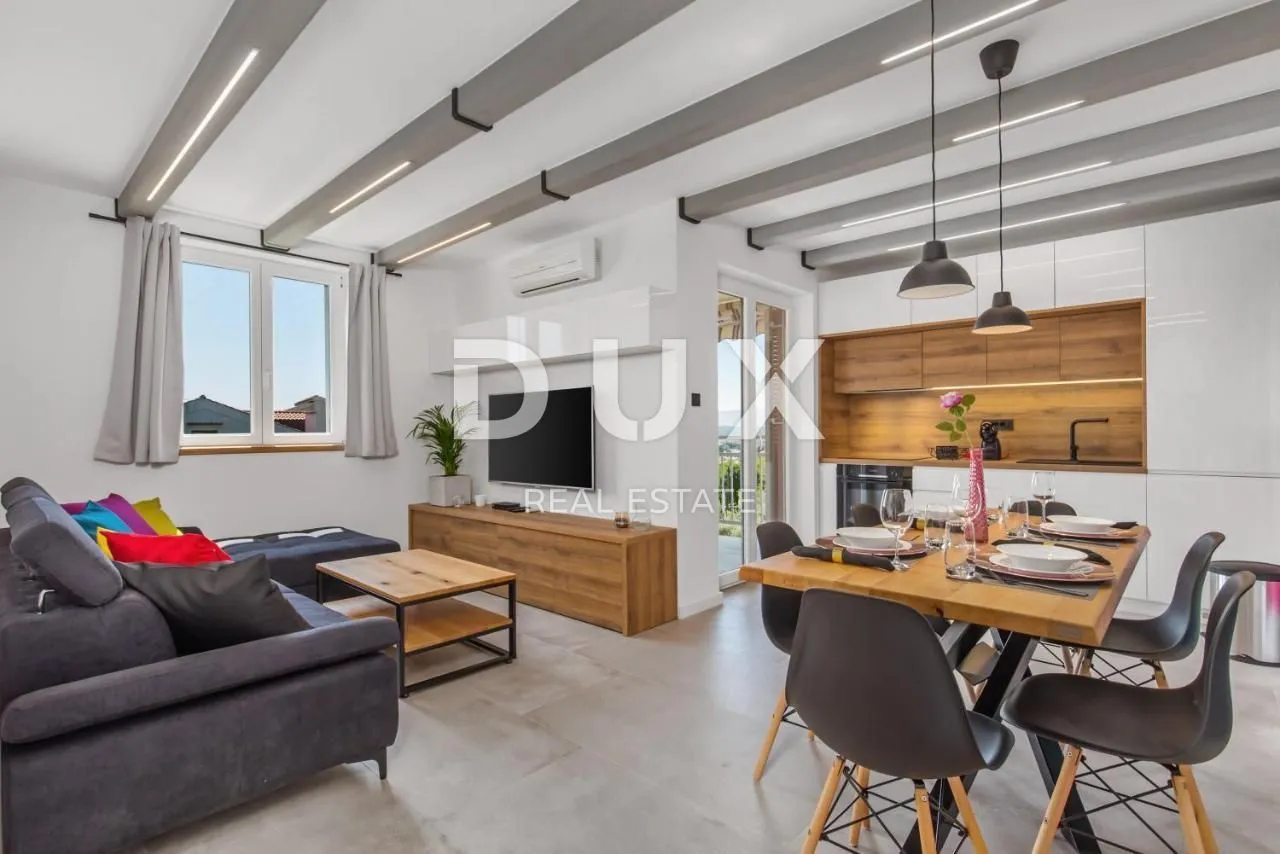 OTOK KRK, Malinska (okolica) - Novoadaptirani trosoban stan Na otoku Krku u okolici Malinske nudimo ovaj moderno uređeni trosoban stan površine 80m2. Stan se nalazi na drugom katu stambene zgrade udaljen svega 600 metara od centra. Stan se sastoji od ulaznog hodnika, kupaone, wc-a, tri spavaće sobe, kuhinje, blagavaone, dnevnog boravka te balkona. Sa balkona se pruža panoramski pogled na more. Stan je nedavno novoadaptiran i moderno uređen sa odličnim rasporedom prostorija. Odaje dojam većeg stana! Stanu također pripada tavansko spremište koje je moguće urediti kao još jednu spavaću sobu, radni prostor ili slično. Stanu pripada 1 parking mjesto. Nekretnina vrijedna pažnje za udoban život ili kao investicija za turistički najam. Poštovani klijenti, agencijska provizija naplaćuje se u skladu s Općim uvjetima poslovanja www.dux-nekretnine.hr/opci-uvjeti-poslovanja ID KOD AGENCIJE: 32528 DUX Krk Mob: +385 91 726 1918 Tel: +385 91 480 8808 E-mail: info@dux-nekretnine.hr www.dux-krk.com