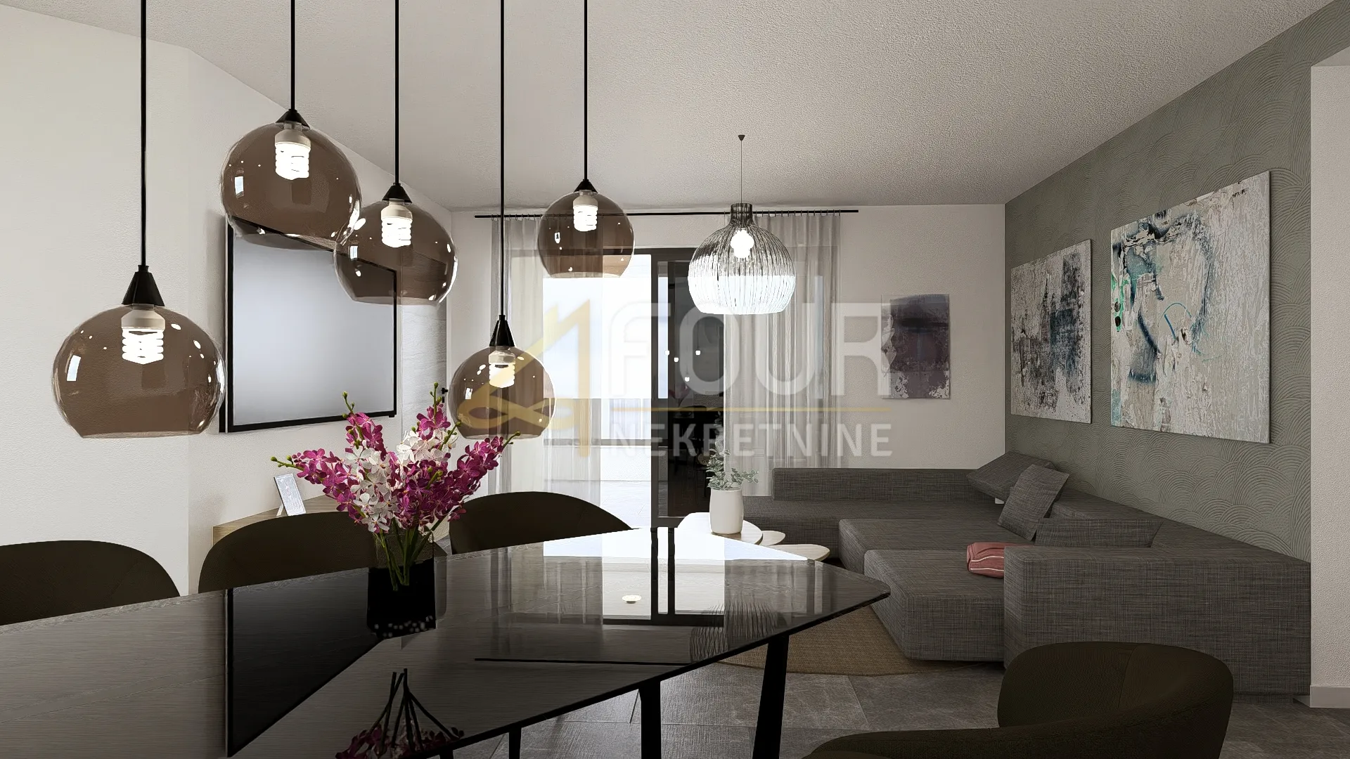 Moderan stan u novogradnji u Vrbniku na otoku Krku, u manjoj stambenoj zgradi s ukupno šest apartmana. Smješten je na prvom katu, ukupne je površine 102.40 m2, od čega je prostrana terasa od 15 m2 idealna za uživanje u pogledu na more. Unutarnji raspored zamišljen je kao trosoban stan s dnevnim boravkom, s naglaskom na udobnost i kvalitetu života. Opremljen je podnim grijanjem, klimom, PVC stolarijom s električnim roletama te nudi savršen spoj modernog dizajna i praktičnosti. Stanu pripadaju i dva vanjska parkirna mjesta, a udaljen je svega 300 metara od mora. Završetak radova predviđen je do kraja 2026. Ova je nekretnina koja spaja udobnost, moderan dizajn i atraktivnu poziciju te predstavlja odličan izbor za život ili investiciju. Poštovani klijenti, agencijska provizija naplaćuje se u skladu s Općim uvjetima poslovanja. ID KOD AGENCIJE: S3824 Hilda Ćoso Agent s licencom Mob: +38598310445 Tel: +385914944144, +38551619770 E-mail: hildacoso@four-nekretnine.hr www.four-nekretnine.hr Vesna Malner Asistent u posredovanju Mob: +385912527750 Tel: +385914944144, +38551619770 E-mail: vesnamalner@four-nekretnine.hr www.four-nekretnine.hr