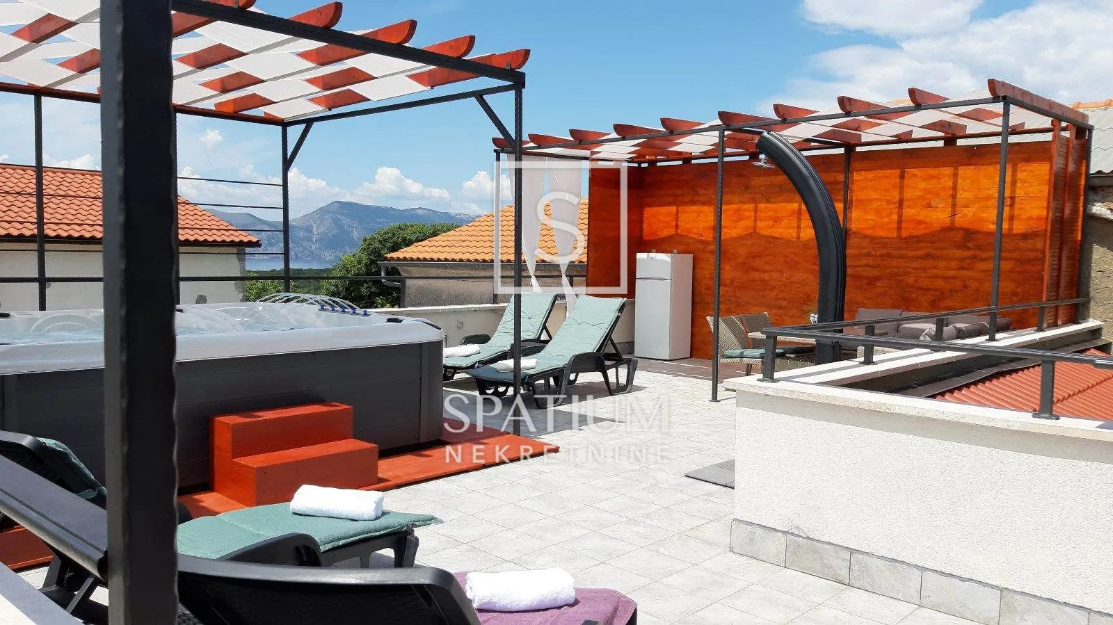OTOK KRK, PINEZIĆI, u ponudi imamo kamenu kuću u nizu s grijanim bazenom i jacuzzijem smještenu na privlačnoj lokaciji u blizini mora i plaže, beach-bara i restorana. Kombinacija kamene primorske kuće i modernog luksuza sastoji se od četiri klimatizirane spavaće sobe s vlastitim kupaonicama te dva toaleta, prostrane moderne kuhinje opremljene u američkom stilu s blagovaonicom, velikog dnevnog boravka, game rooma za druženje i zabavne trenutke s obitelji i prijateljima te uređenog vrta s roštiljem. Krovna terasa površine 60 m2 s jacuzzijem za sedam osoba, solarnim tušem, vrtnim namještajem, ležaljkama i panoramskim pogledom na more prava je oaza za uživanje. Druga terasa je površine 40 m2 s grijanim bazenom i sunčalištem iza kuće nudi mogućnosti za dodatno opuštanje. Kući pripada još jedna parcela površine 70m2 koja se nalazi preko puta, udaljena svega dvadesetak metara, prikladna za dodatno parkiralište ili neki drugi sadržaj. Ova nekretnina idealna je prilika za život ili za investiranje u turističku djelatnost. Pinezići su naselje 500 m od mora. Nekada ribarsko mjesto pretvorilo se u turističko koje oživi osobito u ljetnim mjesecima zbog mnogobrojnih vikendica i apartmana koji su ovdje sagrađeni. Mjesna plaža Jert omiljeno je ljetno okupljalište, a zahvaljujući opremljenosti, uređenosti i čistoći dobila je i plavu zastavu. Pinezići se nalaze 9 km od grada Krka. Za sve dodatne informacije obratite se s povjerenjem. Mislav Smolčić asistent u posredovanju +385 91 500 6757 mislav@spatium.hr Vesna Smolčić agent s licencom +385 91 571 7682 vesna@spatium.hr Spatium nekretnine +385 51 452 479 info@spatium.hr ID KOD AGENCIJE: 2741 Mislav Smolčić Asistent u posredovanju Mob: +385 91 500 6757 Tel: +385 51 452 479 E-mail: mislav@spatium.hr www.spatium.hr Vesna Smolčić Agent s licencom Mob: +385 91 571 7682 Tel: +385 51 452 479 E-mail: vesna@spatium.hr www.spatium.hr