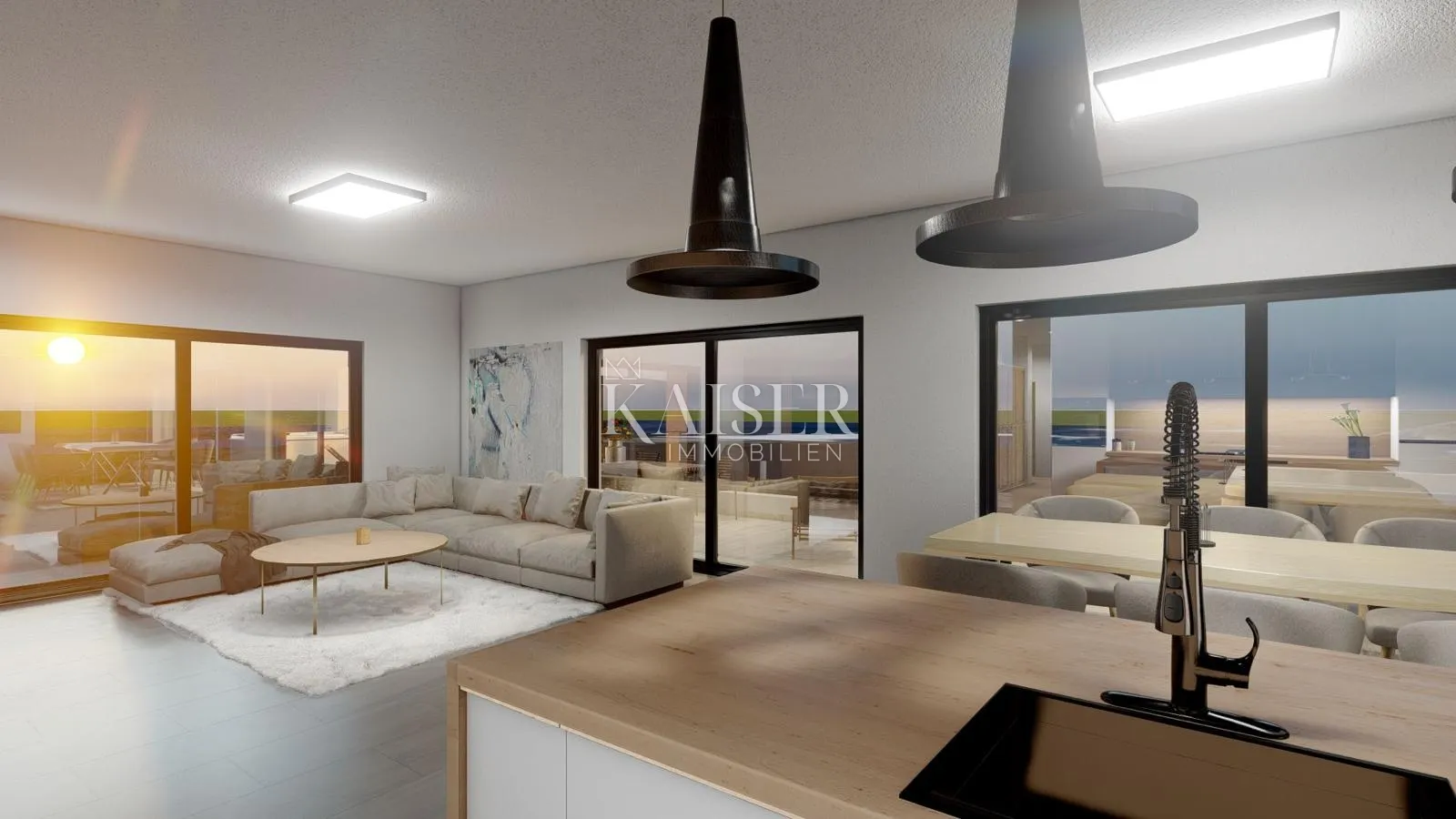 Kaiser immobilien posreduje u prodaji luksuznog dvosobnog apartmana sa pogledom na more, na 1. katu dvokatnice u novogradnji, mjesto Vrbnik na otoku Krku. Apartman ukupne površine 106m2 sastoji se od ulaznog hodnika, dnevnog prostora otvorenog koncepta površine 27m2 koji uključuje boravak, kuhinju i blagovaonicu, spavaće sobe, kupaonice, te glavne spavaće sobe sa vlastitom kupaonicom. Iz dnevnog prostora, ali i obje spavaće sobe izlazi se na prostranu natkrivenu terasu površine 39m2, idealno mjesto za uživanje u ljetnim večerima ali i panoramskom pogledu na more. Stanu također pripadaju i ostava u podrumu zgrade, te dva parkirna mjesta. Objekt se gradi i oprema vrhunskim materijalima, tako da će stan imati podno grijanje i klimatizaciju svih prostorija, dizalicu topline, ALU stolariju, podne obloge i sanitarije od vrhunske keramike. Očekivani završetak izgradnje i rok za useljenje je kraj 2025. Provizija agencije za kupca iznosi 3% + PDV i plaća se u slučaju kupovine nekretnine, kod zaključenja prvog pravnog akta. ID KOD 105-276 ID KOD AGENCIJE: 105-276 Lado Patekar Agent s licencom u posredovanju u prometu nekretnina Mob: +385919390220, +385995677888 E-mail: lado@kaiser-immobilien.hr www.kaiser-immobilien.hr