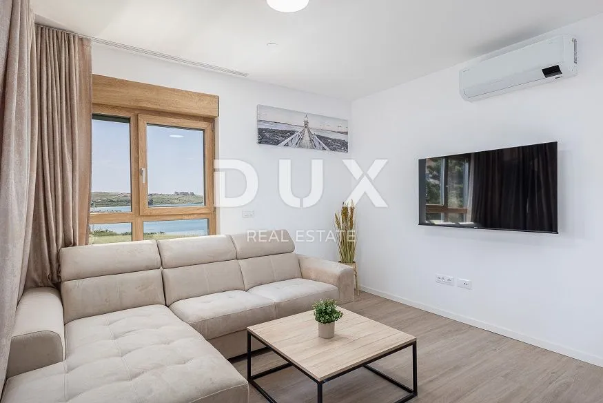 OTOK PAG, POVLJANA - Predivan apartman 47 m2, 1. red do mora U prodaji imamo dvosobni apartman u novogradnji, smješten u prvom redu do mora, na jednoj od najtraženijih mikrolokacija u Povljani. Stan S8, nalazi se na prvom katu moderne zgrade i prostire se na 46,64 m² stambenog prostora. Stan se sastoji od prostranog dnevnog boravka s kuhinjom i blagovaonicom, jedne spavaće sobe, kupaonice te natkrivene loggie – savršene za uživanje u prvoj jutarnjoj kavi ili večernjem odmoru uz zvuk valova. Ono što ovaj apartman čini posebnim je spoj moderne udobnosti i funkcionalnosti. Ugrađen je sustav podnog grijanja i klimatizacije povezan na dizalicu topline , što znači da imate grijanje, hlađenje i toplu vodu kroz cijelu godinu na jednom štedljivom sustavu. Interijer je pažljivo dizajniran, s opremom i namještajem po mjeri, a svaki detalj je izveden s naglaskom na kvalitetu i dugotrajnost. Parkirno mjesto ispred zgrade uključeno je u cijenu. Udaljen svega 10 metara od plaže, apartman je idealna prilika za sve one koji traže mir, kvalitetu i blizinu mora – bilo za osobni odmor, stalni boravak ili kao sigurnu investiciju za turistički najam. Apartman je u sustavu PDV-a, kupac ne plaća porez na stjecanje nekretnina. Poštovani klijenti, agencijska provizija naplaćuje se u skladu s Općim uvjetima poslovanja: www.dux-nekretnine.hr/opci-uvjeti-poslovanja. ID KOD AGENCIJE: 40401 Arijana Traub Agent s licencom Mob: +385 91 267 1662 Tel: +385 91 480 8808 E-mail: arijana@dux-nekretnine.hr www.dux-opatija.com