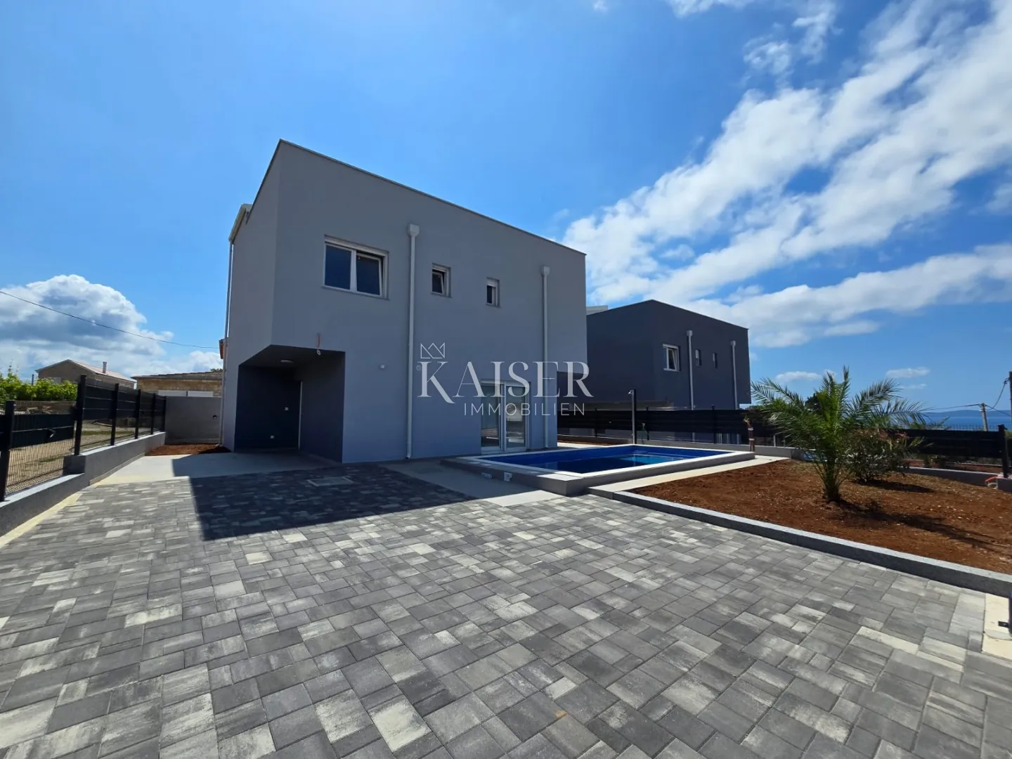 Otok Vir – moderno projektirana kuća s bazenom i panoramskim pogledom na more Prodaju se dvije samostojeće, gotovo identične kuće modernog dizajna, smještene na južnoj strani otoka Vira, udaljene oko 1 km od plaže i 3 km od centra mjesta. Opis kuće Prizemlje kuće obuhvaća hodnik, kuhinju s blagovaonicom, dnevni boravak, WC te natkrivenu terasu, s ukupnom neto korisnom površinom od 61 m². Kat se sastoji od hodnika i tri spavaće sobe, svaka sa svojom kupaonicom, s neto korisnom površinom od 60,94 m². Sa kata vode stepenice na krovnu terasu površine 66,02 m². Ukupna stambena neto korisna površina kuće iznosi 143 m². U dvorištu su osigurana dva parkirna mjesta za automobile. Oprema Kuća je opremljena podnim grijanjem u dnevnom boravku, kuhinji i kupaonicama, a klimatizacija je osigurana klima uređajem od 5 kW u prizemlju te vanjskom klimom s tri unutarnje jedinice na katu. Ugrađena je PVC stolarija s električnim podizačima staklenih stijena i prozora. Nekretnina je pripremljena za dizalicu topline za grijanje bazena, kao i za sustav nadzornih kamera. Fasada debljine 12 cm pruža izvrsnu termoizolaciju, dok je sustav odvodnje riješen septičkom jamom s pripremom za priključak na gradski vodovod i kanalizaciju. Dodatno, kuća ima cisterne za vodu kapaciteta 10.000 L te priključak na električnu mrežu. Lokacija Smještena u atraktivnom dijelu južne strane otoka, ova nekretnina idealna je za život ili investiciju u turizmu. Plaža je udaljena svega petnaestak minuta lagane šetnje. Centar Vira udaljen je oko 3 km, što znači da su sve dodatne usluge i zabavni sadržaji na dohvat ruke – kratkom vožnjom. Provizija agencije za kupca iznosi 3 % + PDV i plaća se u slučaju kupovine nekretnine, kod zaključenja prvog pravnog akta. Kontaktirajte nas s povjerenjem za više informacija i dogovor oko razgledavanja. Tel: +385958122353 Email: kristina@kaiser-immobilien.hr ID KOD AGENCIJE: 142-16 Kristina Rudan Agent s licencom u posredovanju u prometu nekretnina Mob: +385958122353, +385995677888 E-mail: kristina@kaiser-immobilien.hr www.kaiser-immobilien.hr