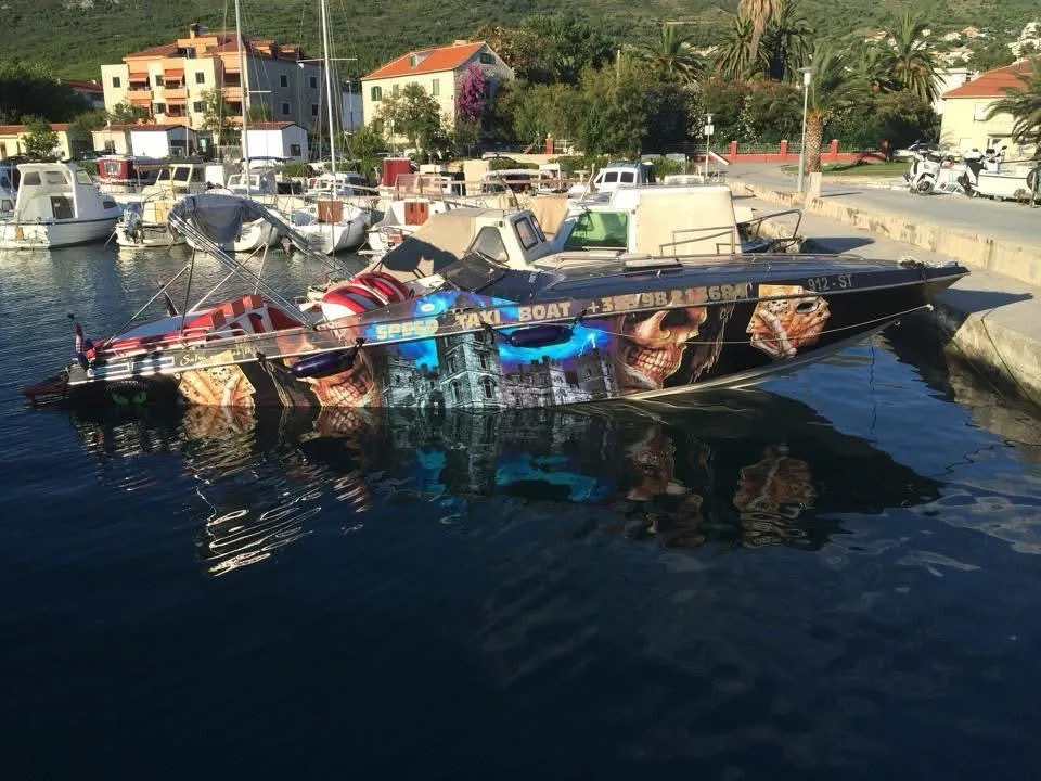 Brod u dobrom stanju,zahtjeva nešto ulaganja da bude u top stanju. Vrlo poznat i priznat američki trup rađen za off shore trke,izuzetno čvrst,izdržljiv i trpi more. Bolji model sa dva motora (dva magnuma 502) sa bravo one racing z nogama. Zbog nedostataka vremena se ne koristi pa samim tim i prodaje vrlo povoljno. Ovakav model sa dva motora u dobrom stanju nema ispod 65-70 tisuća. Ajmo rec da je u ovaj brod potrebo uložiti 10 tisuća da bude odlično stanje. Slike su starije kada je imao foliju,sada je bijeli sa crvenom crtom.