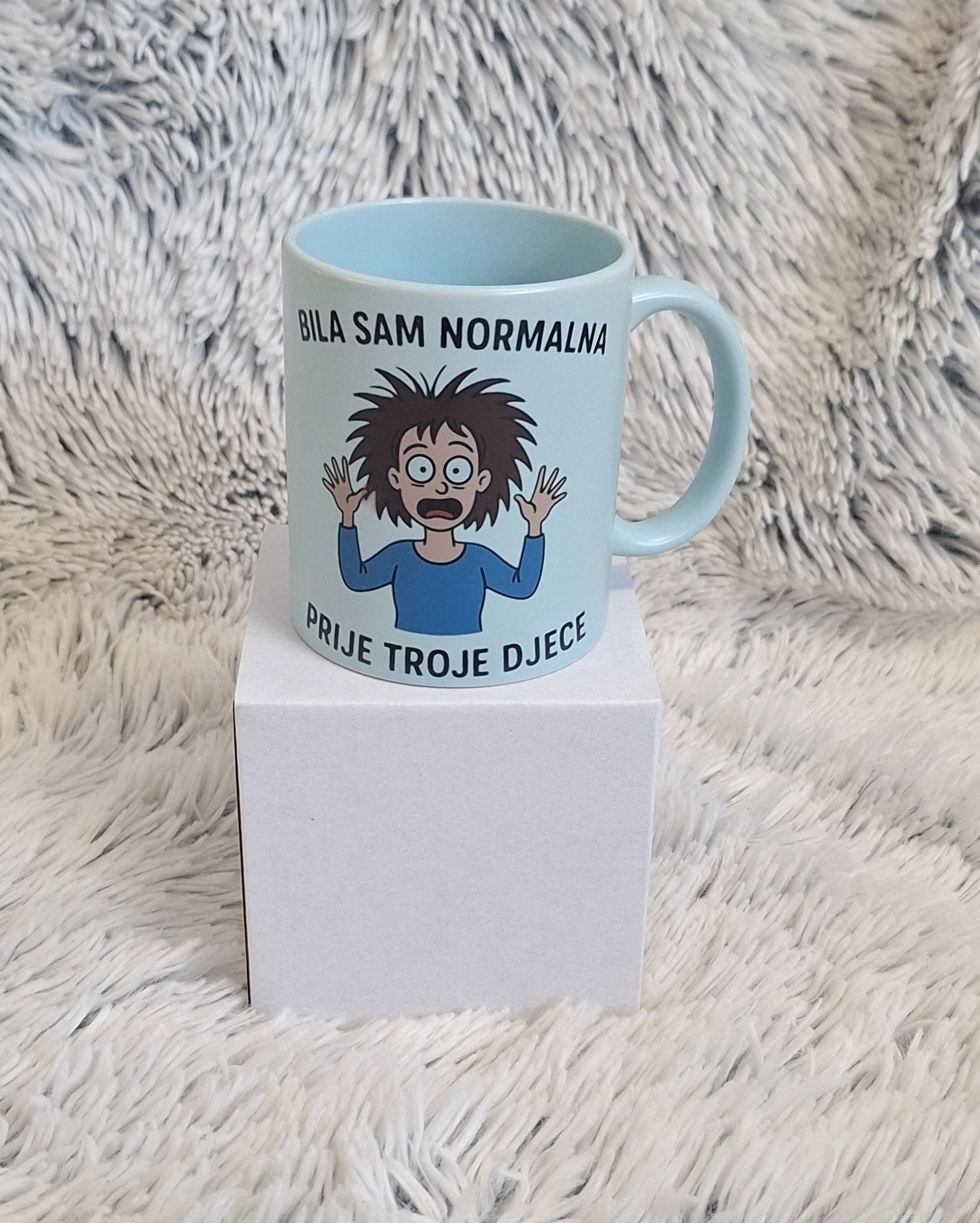 Unesite dozu zabave i stila u svoje jutarnje rituale uz našu pastelno plavu šalicu! Njezin nježan ton plave boje i mat završni izgled čine je savršenom kombinacijom elegancije i humora. Idealna je kao poklon za mame, prijateljice ili kolegice koje znaju da je kava najbolji saveznik svakog dana.