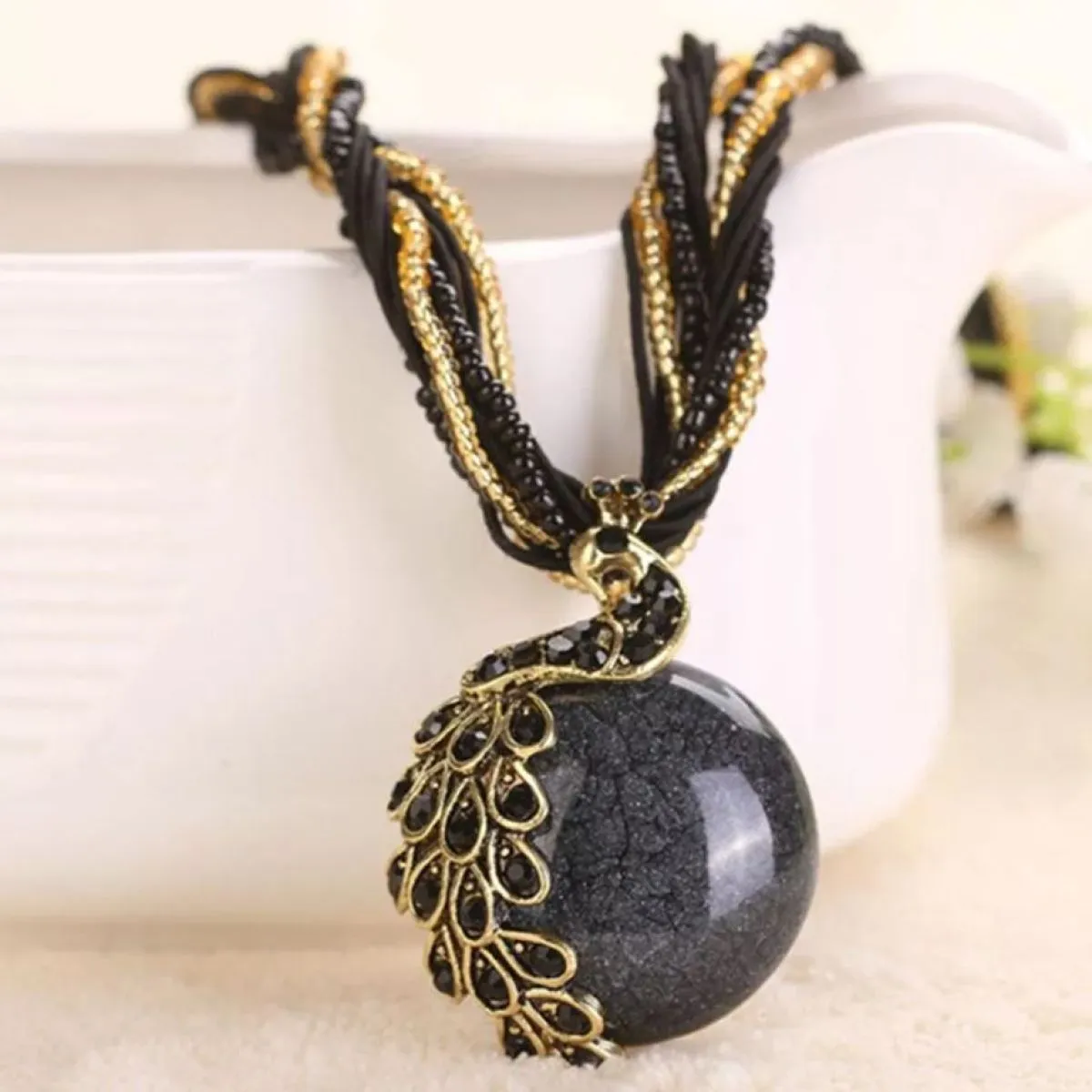 Privjesak/medaljon čini divan sedefasto presijavajući kamen ukrašen likom pauna