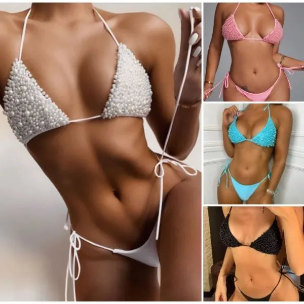 Pearl bikii set sastoji se od grudnjaka s podstavom obloženim sjajnim perlicama te tanga gaćica.