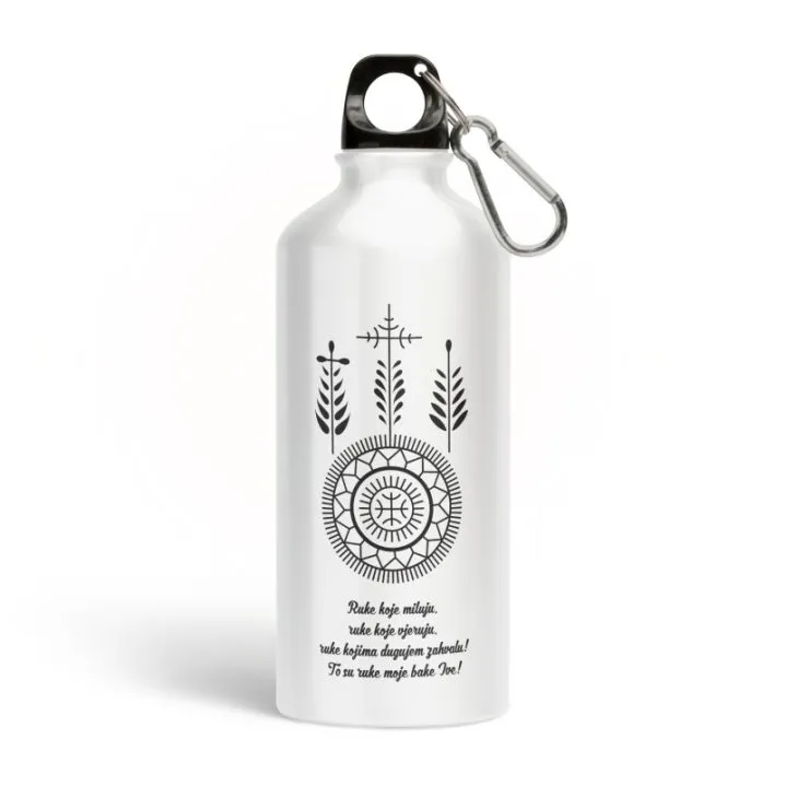 Tradicionalno hrvatsko tetoviranje ili ‘sicanje’ je bio običaj među bosanskohercegovačkim Hrvatima i dijelovima Hrvatske koji su bili pod turskom okupacijom. Ova boca za vodu neka te uvijek podsjeća na tvoju baku ili jednostavno se svojoj baki zahvali što je sve stvarala svojim rukama.