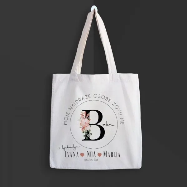 Šopingholičari, a i oni koji to nisu, oduševit će se ovom vrećicom modernog dizajna. Jer nije ona samo obična vrećica, već personalizirana za osobu koja nas je odgojila i pomogla nam da “stanemo na svoje noge”, a to je majka i/ili baka. Ova vrećica oduševiti će svaku majku ili baku. I još k tomu ona je platnena što znači da je sigurna za okoliš i može podnijeti veliki teret.