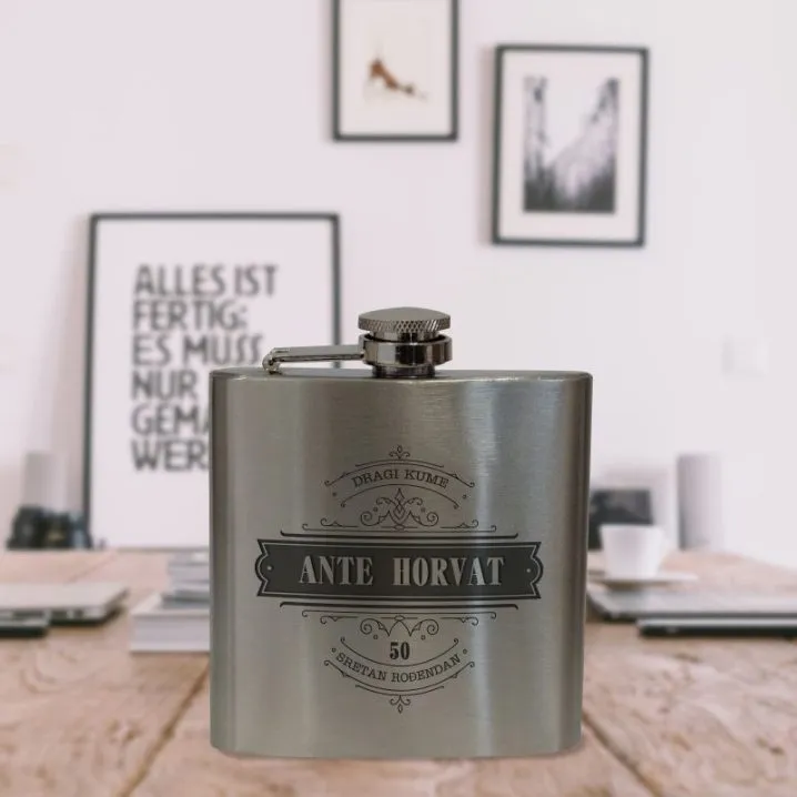 Čestitajte rođendan na poseban način! Nema dobre zdravice bez dobre kapljice. Ni dobre kapljice bez dobre posudice. Ova je pljoska kao stvorena za takve situacije. Dobro čuva tajni napitak. Na prednju stranu ćemo gravirati ime i prezime slavljenika, broj njegovih godina i kratku poruku (zavisno što nam ispunite u predviđena polja). Živjeli!