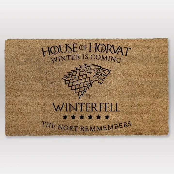 Personalizirani otirač za sve ljubitelje serije “Igra prijestolja” (Game of Thrones) i obitelji Stark. Obiteljsko geslo glasi: “Zima dolazi!”, a zamak se nalazi u Oštrozimlju. Neka ime Tvoje obitelji bude dio Stark priče. Dovoljno je šiljast da bi cipele bile čiste.