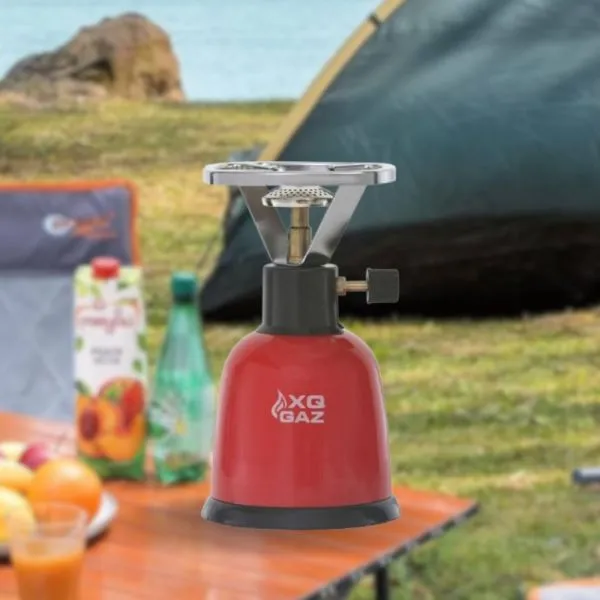 Plinski štednjak s 1 plamenikom, idealan za putovanje ili odmor veličina: 115x115xH205 mm težina: cca. 365 grama pogodno za 190 grama butan plina (nije uključen) 970 W