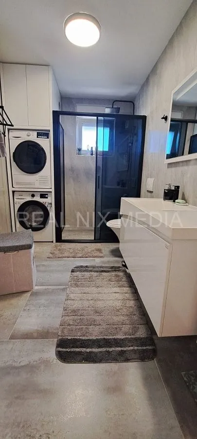 ODMAH USELJIVO! Moderno uređen stan na drugom katu stambene zgrade sa prostranom krovnom terasom sa koje se pruža pogled na more! Stan je osunčan, svijetao, jugoistočno orijentiran! Stan se prodaje kompletno namješten! Klima uređaj u svakoj prostoriji, podno centralno grijanje u cijelom stanu, PVC stolarija, protuprovalna vrata, portafon... Stan sačinjava predsoblje, kuhinja, blagovaonice i dnevni boraka sa izlazom na balkon, dvije spavaće sobe, kupaonica. Stanu pripadaju tri vanjska parkirna mjesta! Na krovnoj terasi provedene su instalacije struje i vode. Zgrada posjeduje svu potrebnu dokumentaciju, uredno vlasništvo!