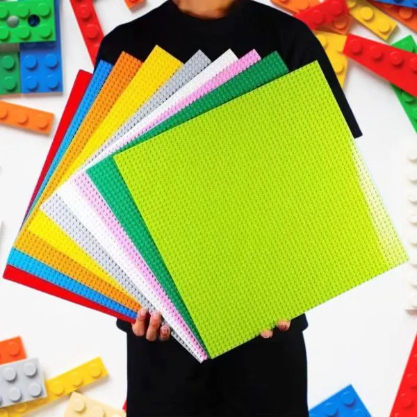 Jednostavno postavite podlogu na ravnu površinu i počnite slagati svoje kockice. Možete ju koristiti za igru na stolu, podu ili čak kao bazu za izložbene modele. Savršena je i za grupe djece – svatko može imati svoju boju podloge!