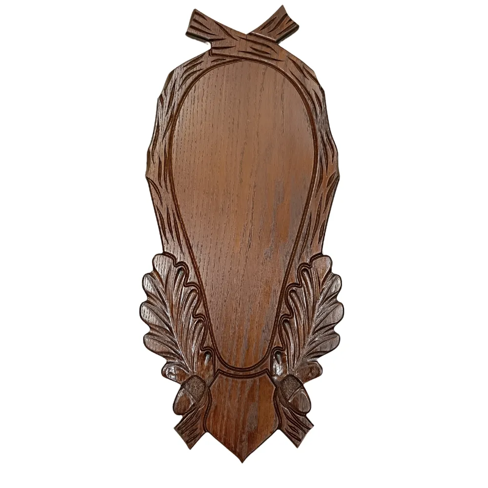 Podložna pločica za trofej jelena izrađena od izdržljivog hrasta. Dimenzije ploče su 72,5 × 31 cm, a montažne 48,5 × 23 cm.