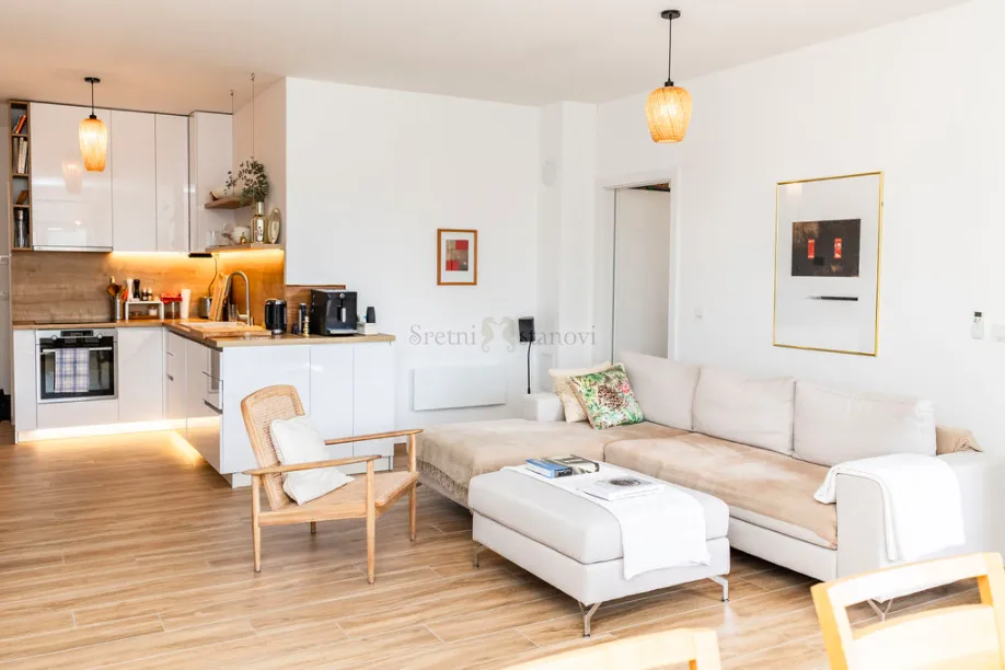 Prodaje se predivan stan na izvrsnoj lokaciji u Podsolarskom, u blizini svih važnih sadržaja za život, te nedaleko od mora. Stan se nalazi u kvalitetno izgrađenoj zgradi, opremljenoj prema zadnjim standardima kvalitete, a zgrada se nalazi u lijepo uređenom kompleksu koji je odlično održavan. Sam stan se sastoji od ulaznog prostora, kuhinje s blagovaonom i dnevnim boravkoma, triju soba (jedna je pretvorena u ured, a druga u manju gostinjsku sobu), dviju kupaonica (glavna spavaća soba ima svoju vlastitu kupaonicu), ostave u stanu i predivne, velike terase. Stan ima i u prizemlju zgrade spremište, te u garaži jedno parkirno mjesto. Sam stan je opremljen kvalitetnim namještajem koji ostaje u stanu. Stan je idealan za svakodnevni život ili bavljenje turističkim najmom. Papiri vlasništva su uredni, bez prava trećih osoba na isti i bez hipoteke. Cijena na upit. A beautiful apartment for sale in an excellent location in Podsolarski, close to all important facilities for life, and not far from the sea. The apartment is located in a well-built building, equipped according to the latest quality standards, and the building is located in a beautifully decorated complex that is well maintained. The apartment itself consists of an entrance area, a kitchen with a dining room and a living room, three rooms (one has been converted into an office and the other into a smaller guest room), two bathrooms (the master bedroom has its own bathroom), storage in the apartment and a beautiful, large terraces. The apartment also has a storage room on the ground floor of the building, and one parking space in the garage. The apartment itself is equipped with quality furniture that remains in the apartment. The apartment is ideal for everyday life or tourist rental. The ownership papers are in order, with no rights of third parties and no mortgage. Price on request. ID KOD AGENCIJE: 6186 Helga Zeneral Mob: 099 415 8314 Tel: 051/301-502 E-mail: helga@sretnistanovi.hr www.sretnistanovi.hr