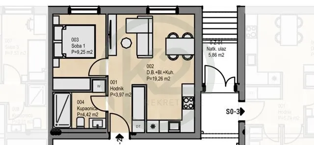 Prodaje se 2 - sobni stan u novogradnji S0-2, VP, korisne površine 36,90 m2, obračunske površine 36,90 m2, nekoliko minuta od Jankomira. Stan se sastoji od: - Hodnik 3,97 m2 - Dn. B.+blag+Kuh. 19,26 m2 - Soba 1 9,25 m2 - Kupaonica 4,42 m2 UKUPNO: 36,90 m2 Uz stan je moguće kupiti GPM + ostava po fix. cijeni 30.000 € ili VPM + ostava po fix. cijeni 15.000 €. Stan se nalazi u zgradi broj 6 sa 14 stanova, VP+2 kata. Kupac je oslobođen plaćanja poreza na promet nekretnina i agencijske provizije!! Stanove odlikuje najviši stupanj opreme i najsuvremenije tehnologije u pogledu instalacija i upravljanja istima. Useljenje proljeće / 27. Energetski razred A+. armiranobetonska konstrukcija demit fasada debljine 12 cm termoizolacija ravnog krova stirodurom debljine 20cm grijanje: podno (dizalica topline) hlađenje: klima uređaj vrhunska pvc stolarija: podizno klizne stijenke, rolete na struju, komarice parkirna mjesta opremljena elektro punjačem za vozila na električni pogon Mirna lokacija okružena zelenilom i odlično povezana ostatkom s grada. U četvrti se nalaze svi osnovni sadržaji poput vrtića, osnovne škole, tržnice, doma zdravlja, policijske postaje, pošte, ljekarne, trgovine, trgovačkih centara te nekoliko izletišta i dječjih igrališta koja se nalaze u neposrednoj blizini, trgovački centar 5 minuta hoda. Položajem, sadržajima i prometnom povezanošću projekt ima kvalitete centra grada, dok svojim zatvorenim karakterom, razinom privatnosti i pogledom na zelenilo kojim je okružen nudi kvalitete mirnog obiteljskog naselja udaljenog od gradske vreve. Lokacija je odlična za rekreaciju i aktivan boravak u prirodi na livadama oko zgrade ili uz rijeku Savu te jezera Orešje i Rakitje koja se nalaze nedaleko zgrade. UDALJENOST POTREBNIH SADRŽAJA -trgovački centri 5 minuta hoda<br /> -pošta 6 minuta hoda<br /> -osnovna škola 7 minuta hoda<br /> -ljekarna 9 minuta hoda<br /> -Dom zdravlja 12 minuta hoda<br /> -Vrtić 15 minuta hoda Zgrada je odlično prometno povezana autobusnim, tramvajskim i željezničkim linijama koja se nalaze u krugu od 300m. Ostala su još 3 SLOBODNA stana: -S1-3, dvosobni -S1-6, trosobni -S2-2, trosobni Dodatne informacije na +385 91 518 4526, Vesna.<br /> K2 NEKRETNINE<br /> QBAT STUDIO d.o.o.