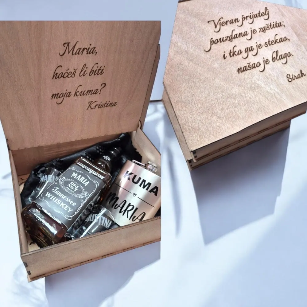 Ovaj poklon paket dolazi u personaliziranoj drvenoj kutiji unutar koje se nalazi: