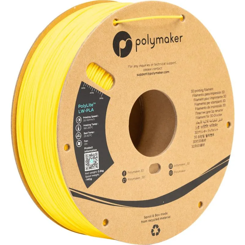 PolyLite™ LW-PLA je specijalni pjenasti PLA koji se printa kao i obični PLA, ali je upola lakši. LW-PLA je unaprijed pripremljen pa se ne pjeni kod printanja, temperatura hotenda 190 – 210˚C, podloge 30 – 50˚C.