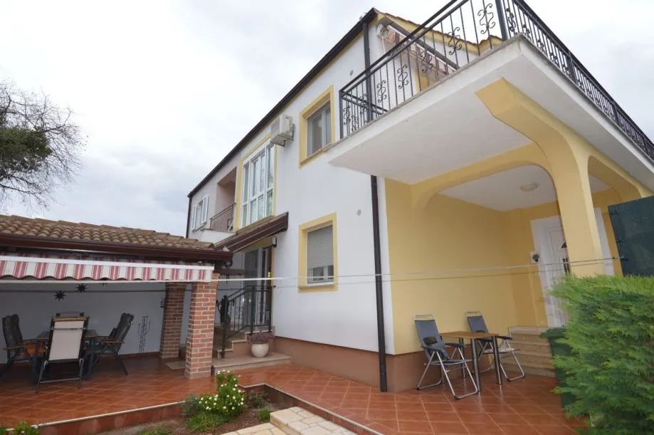 Prodaje se dvojna kuća nedaleko Poreča i mora. Nalazi se na mirnom mjestu na samo 2 km do lijepih plaža. Kuća ima stan u prizemlju i prvom katu. Svaki stan se sastoji od kuhinje sa blagovaonicom i dnevnim boravkom, spavaće sobe, kupaonice i velike terase. Sa gornje terase se pruža otvoren pogled na more. U lijepo uređenom vrtu je smještena prostrana ljetna kuhinja . U vrtu se nalaze roštilj i vrtna kućica. Kuća posjeduje 2 natkrivena parkirna mjestaispred kuće. Kuća se prodaje sa namještajem i tehnikom.