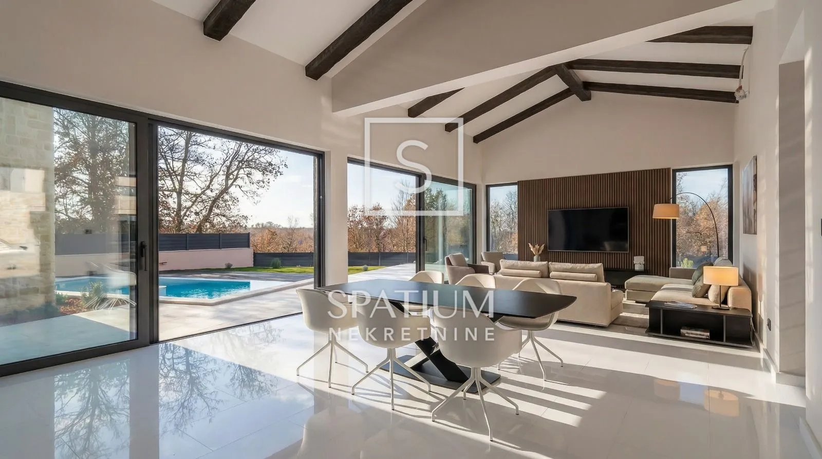 POREČ, ISTRA, moderna vila u okolici Poreča, nalazi se na mirnoj lokaciji u Porečkom zaleđu te izvrsno je prometno povezana s gradom i plažama. Udaljena je svega 4 km od Poreča što ju čini idealnim domom za obiteljski život ili investicija u svrhu turističkog najma. Kuća ima šarmantan, univerzalni stil s dozom luksuzna koji nas dočekuje već na samom ulazu u kuću. Velika, masivna hrastova vrata u kombinaciji sa aluminijem punim profilom protežu od poda do stropa - ostavljaju fantastičan prvi dojam. Ulazni prostor izvrsno je osvijetljen prirodnom svjetlošću zahvaljujuću velikim staklenim stijenama. Vila od ukupno 210 m² proteže se na prizemlje i prvi kat. U prizemlju se nalaze dvije spavaće sobe, dvije kupaonice, otvoreni dnevni boravaka, kuhinja s blagovaonicom te gostinjski wc i mala smočnica/ostava. Na 1. kat imamo još dvije spavaće sobe, dvije kupaonice i terasu na središnjem dijelu kuće. • Kuća je opremljena aluminijskom stolarijom u antracit boji s električnim žaluzinama, • Grijanje i hlađenje riješeno je podnim grijanjem s dizalicom topline te klima uređajima - Mitsubishi. • Kupaonice su opremljene isključivo brendiranom opremom i sanitarijama Laufen. • Na ulaznom hall-u i dnevnom boravku postavljen je izuzetno kvalitetni talijanski mramor, dok su sobe opremljene prvorazrednim pločicama u izvedbi imitacije drva. • Grijani bazen obložen je velikim formatom talijanske keramike. • Nekretnina je osigurana alarmom, video nadzorom i video parlafonom. Vila se prodaje kompletno namještena i spremna za useljenje odmah. Poreč je jedan od vodećih turističkih centara u Istri, prepoznatljiv po bogatoj povijesti, kulturnoj baštini i kvaliteti života. Grad nudi razvijenu infrastrukturu, uređene plaže, brojne sportske i kulturne sadržaje te prepoznatljive gastronomske destinacije. U blizini se nalaze prirodne ljepote i znamenitosti poput Eufrazijeve bazilike pod zaštitom UNESCO-a. Poreč uspješno spaja mediteranski ambijent s modernim sadržajima, što ga čini privlačnim kako za život, tako i za ulaganje. Za sve dodatne informacije, obratite nam se s povjerenjem. Filip Marić Agent s licencom +385 91 335 5350 filip@spatium.hr Michael Radola Agent s licencom +385 91 575 3640 michael@spatium.hr Spatium nekretnine +385 51 272 903 info@spatium.hr ID KOD AGENCIJE: 7281 Filip Marić Agent s licencom Mob: +385 91 3355 350 Tel: +385 51 272 903 E-mail: filip@spatium.hr www.spatium.hr