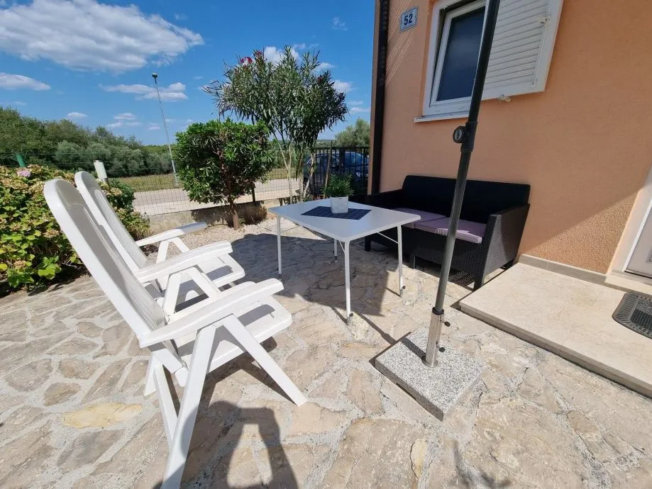 Nedaleko Poreča i mora prodaje se kuća prva u nizu od 105,75 m2 sa vlastitom okućnicom od 290 m2. Građena je 2008. godine. Sastoji se od prizemlja i kata. U prizemlju se nalazi hodnik, wc+praona, tehnička soba, ostatak prostorije prizemlja je jedan veliki prostor u kojemu je kuhinja, blagovaona i dnevni boravak sa kaminom, spremište. Iz dnevnog boravka se izlazi na terasu i u vrt. Na katu se nalaze tri spavaće sobe, dvije sa vlastitim balkonom, te velika kupaona sa tušem. U kući je provedeno centralno grijanje na struju, i na svakom katu je po jedna klimatska jedinica. Kuća je vrlo dobro očuvana, prodaje se kompletno sa namještajem i opremom. Stanu pripadaju i 2 parkirna mjesta.