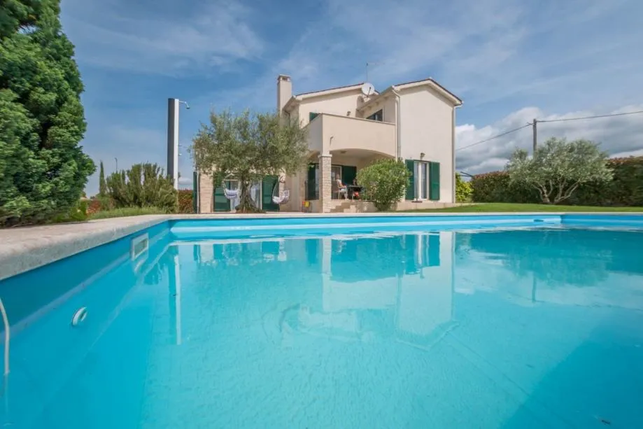 Ova prekrasna kuća s bazenom i pogledom na vinograde idealan je dom za odmor ili stalno stanovanje. Smještena je u mirnom dijelu samo 14 km udaljenom od Poreča i Jadranskog mora, što pruža savršenu ravnotežu između privatnosti i blizine svim sadržajima.