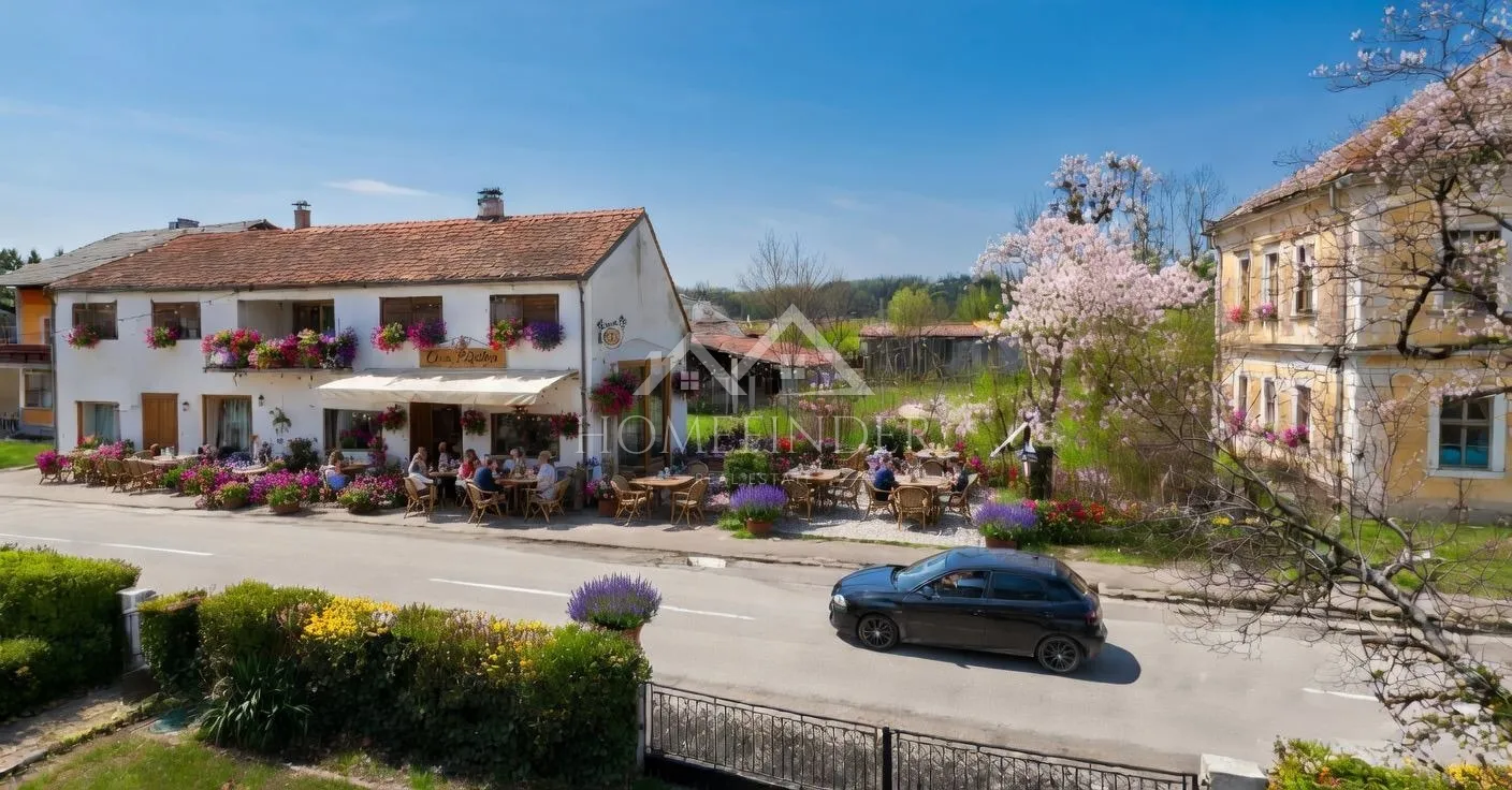 Poslovna zgrada u centru Kraljevca na Sutli, smještena uz glavnu prometnicu Kumrovec – Zagreb, odmah pored crkve. Lokacija je izuzetno frekventna, s procijenjenim prometom od oko 3000 vozila dnevno, povezujući Klanjec i Zaprešić. Osnovne informacije: Parcela površine 1500 m² Bivši restoran/bar (125 m²) – kuhinja, sanitarni čvor i vinski podrum (za adaptaciju) Bivša trgovina (125 m²) Kat: sobe i uredski prostori (250 m², potrebno uređenje) Parkiralište ispred objekta (novi asfalt) Krov obnovljen 2015. godine Dodatni objekt – hala (300 m²): 130 m² u starijem stanju (nova vrata visine 290 cm) 120 m² novouređenog prostora Dva nova ulaza/vrata (visine 290 cm i 215 cm) Nekretnina se nalazi na zemljištu od 1500 m², uz mogućnost dodatne kupnje građevinskog zemljišta preko ceste (cca 10.000 m²), koje se nastavlja na postojeću česticu. Ukoliko vas zanima,javite nam se za razgledavanje! ID KOD AGENCIJE: 1031 Lorenzo Dedić Suradnik u procesu obuke Mob: 095 798 0812 E-mail: l.dedic@homefinder.hr www.homefinder.hr