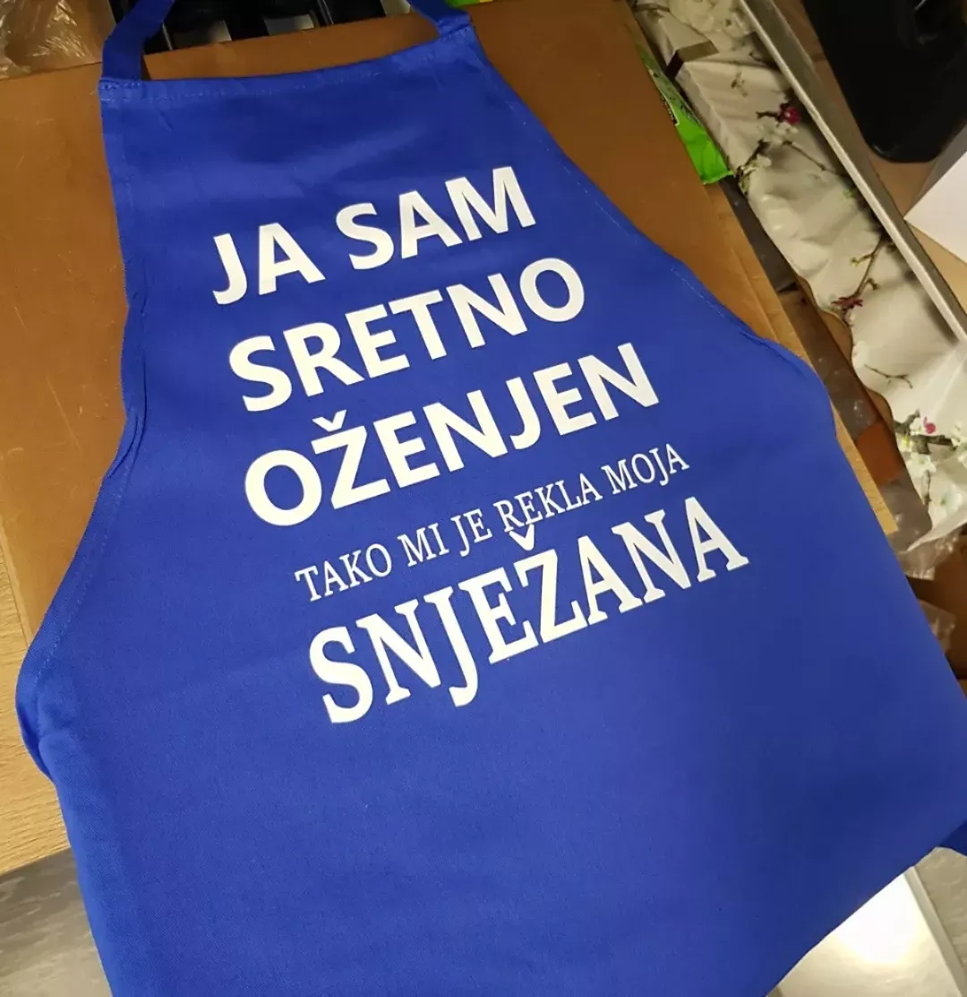 Pregača je idealan poklon za majke, bake, kuhare i grill majstore. Tisak je po Vašoj želji.