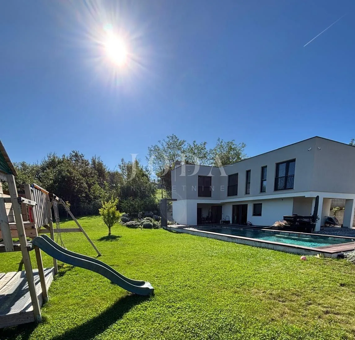 Prodaje se ova prekrasna moderna Vila sa bazenom i prostranim okolišem,LABIN okolica. Vila je kompletno opremljena te vrhunski uređena. Ispred vile prostran parking te dizajnerski osvijetljen ulaz vodi nas u open space dnevni boravak,kuhinju i blaovaonu. Velike staklene stijene pružaju pogled na elegantnu terasu sa sunčalištem i bazenom te na uređen prostran travnjak i zelenilo koji okružuju ovu Vilu. Uz terasu se nalazi vanjski tuš,natkrivena ljetna kuhinja,spremište i wc. Na prvoj se etaži nalaze tri komforne i prekrasno osvijetljene spavaće sobe svaka sa svojom kupaonom. Pri izgradnji se vodilo računa o vrhunskoj kvaliteti izgradnje i opremanja što se vidi na svakom koraku. Vila je opremljena sustavom podnog grijanja i kompletno klimatizirana te solarna elektrana na krovu. Nalazi se u mirnom okruženju,svega par minuta vožnje od grada Labin. Ova je Vila savršena investicija kako u turizam tako i u miran obiteljski život. Vlasništvo 1/1 ID KOD AGENCIJE: TR-7134 Josip Šikić, mag.oec Agent s licencom Mob: +385 91 890 4694 Tel: +385 51 403 771 E-mail: info@joda-nekretnine.hr www.joda-nekretnine.hr