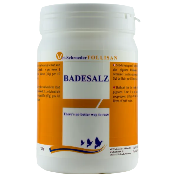 Za tjedno kupanje Vaših golubova. Sol za kupku nema nikakvog učinka protiv parazita, to je bajka onima koji tvrde drugačije! Koristite naše kapi protiv parazita U-200 protiv parazita. Ova sol djeluje na zaštitu samo 2-3 tjedna nakon kupanja. Nevjerojatna formula daje vašim pticama njegu, čvrstoću perja, skida potpuno svaku prašinu i masnoće što se može vidjeti na ovoj soli. Pojedine druge soli za kupanje su obojane kada se doda voda, no naša sol za kupanje je prozirna baš iz razloga da se vidi njeno djelovanje! Kod nas neke tajne ipak moraju biti i vidljive!