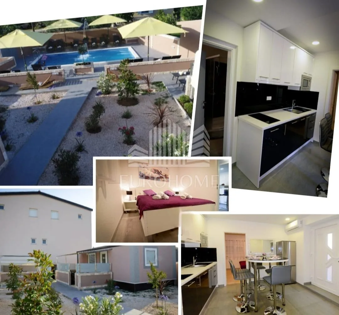 U Privlaci na mirnoj lokaciji udaljen svega 350 metara od plaže Punta i plaže Mostina prodaje se etažiran stan sa dva dodatna studio apartmana, bazenom i potpuno uređenim vrtom . Stan se nalazi u prizemlju zgrade. Sastoji se od kuhinje sa dnevnim boravkom i blagovaonicom, dvije spavaće sobe i kupaonice. Netto korisna površina stana iznosi 42m2. Stan ima vlastiti bazen u dvorištu sa velikim vrtom od 379 m2 . Posjeduje i dodatno vlastito parkirno mjesto od od 15m2. U dvorištu se nalaze još tri pomoćna objekta od kojih su dva prenamijenjena u studio apartmane gdje svaki ima sobu, kuhinju, kupaonicu, i vlastitu terasu. Stan i apartmani u potpunosti su namješteni te se takvi i prodaju,. Lokacija: Grad Zadar i Nin nalaze se u neposrednoj blizini, što čini veliku prednost življenja i sezonskog uživanja. Idealna je investicija za miran život, samim time pogodna je i za turistički najam koji će gostima pružiti idiličan odmor u malom mjestu nedaleko Zadra i Nina. Vlasništvo i dokumentacija uredni 1/1 i bez tereta. Za više informacija zvati na kontakt: Marijana Vladović Mob. : 091 9590 908 Email: marijana@eurohome-nekretnine.hr Web: www.eurohome-nekretnine.hr Agencijska naknada kupcu iznosi 2% + PDV ID KOD AGENCIJE: 4708 Marijana Vladović Savjetnik u prodaji Mob: 091 9590 908 Tel: 01 6231 365 E-mail: marijana@eurohome-nekretnine.hr www.eurohome-nekretnine.hr