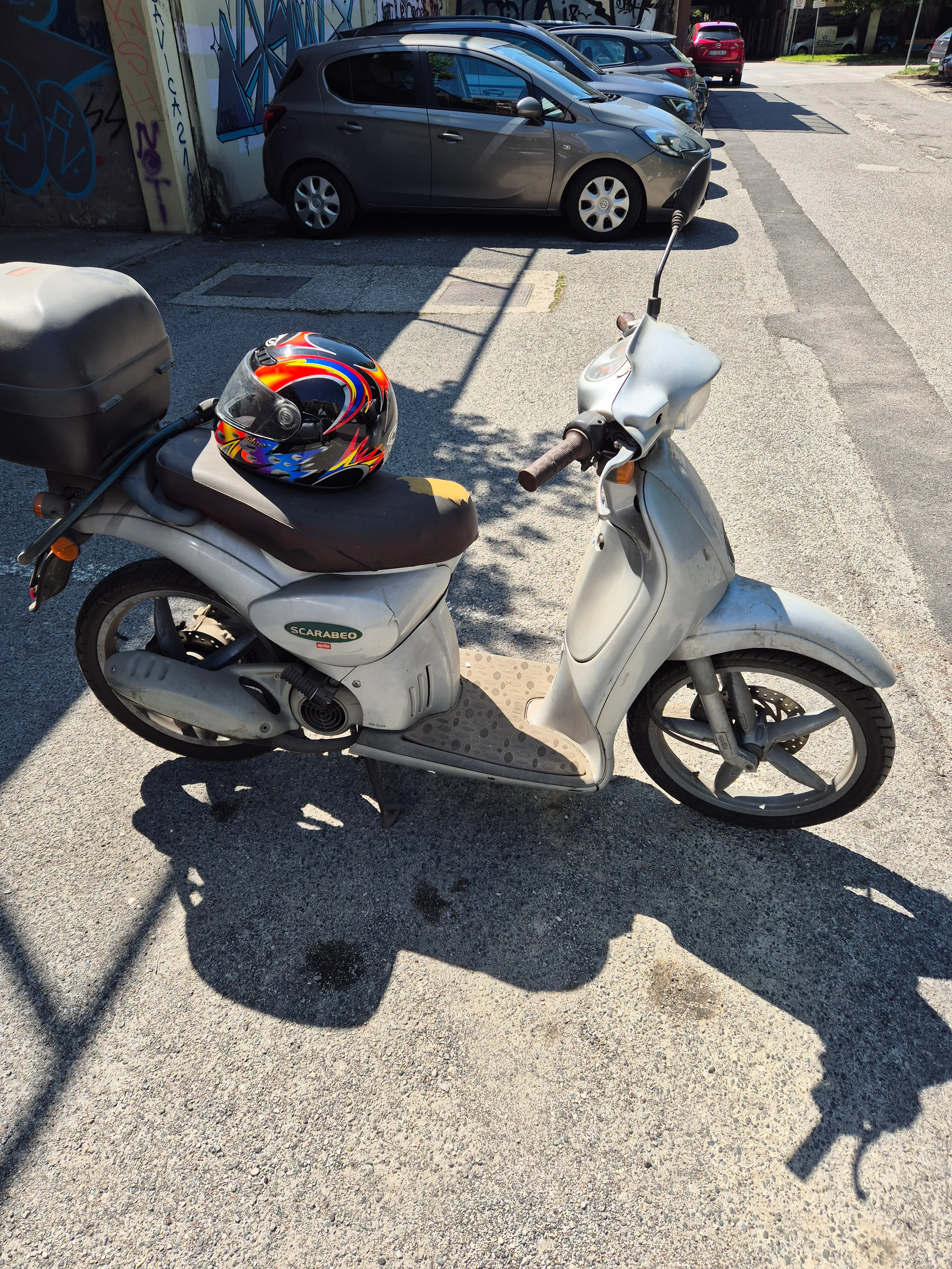 Prodajem skuter Aprilia Scarabeo, prva registracija 03/2002.god., odjavljen 2011, malo kilometara 3637, garažiran duže vrijeme, potreban servis, putni kofer i kaciga uključeni u cijenu.