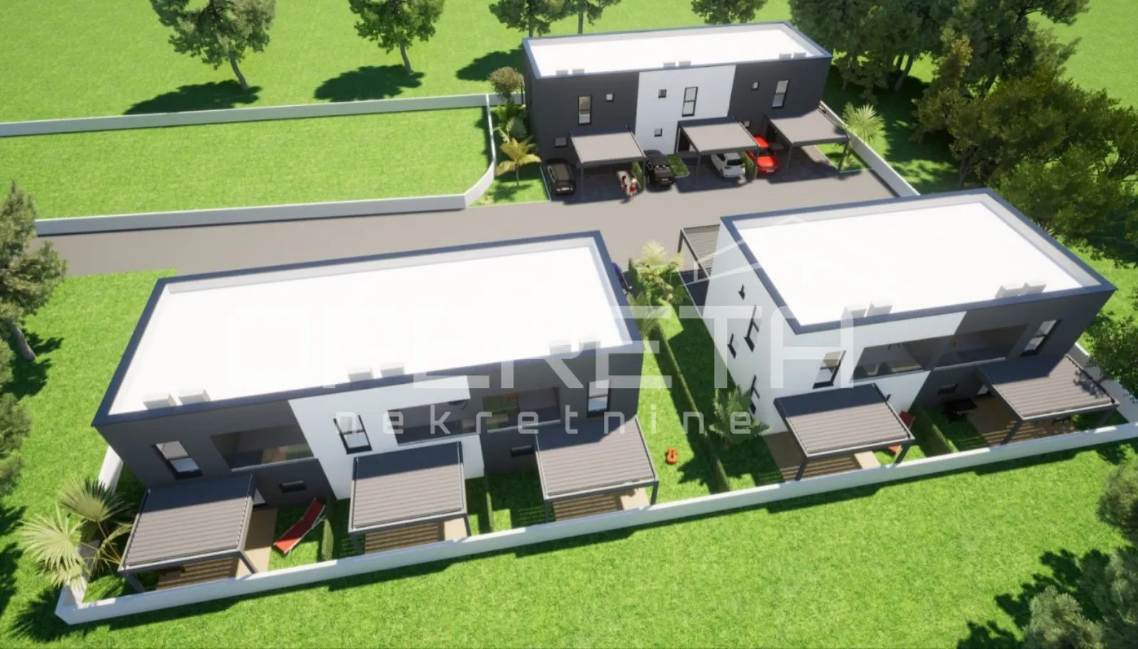 Prodaja, Kuća, Preko, Štrokova bb, Kuća u nizu, 106m2 Ekskluzivna luksuzna kuća u nizu, smještena na idealnoj lokaciji u mjestu Ugljan cca. 90 metara od mora i plaže s pogledom na iste. Jedan objekt s 2 kuće u nizu. Na istoj parceli predviđena su još 2 objekta od po 3 kuće u nizu. Ovo je objekt B s dvije kuće, kuća 2. Vlastiti vrt i parkiralište za 2 automobila. Energetski certifikat A, koji garantira vrhunsku energetsku učinkovitost i uštedu energije, Prozori od PVC-a s troslojnim staklima i komarnicima, osiguravajući toplinsku i zvučnu izolaciju, Vrhunski moderni parketi u dnevnim i spavaćim prostorijama. Keramika i sanitarije renomiranih proizvođača, koje jamče eleganciju, trajnost i lako održavanje. Dodatan luksuz može se krojiti prema Vašim željama. projekt predviđa mogućnost gradnje privatnih bazena u sklopu nekih kuća ili gradnja zajedničkog bazena. Kupci imaju priliku realizirati opciju gradnje bazena prema vlastitim željama. Plan dovršetka 5. mjesec 2026. Moguća prodaja cijelog projekta. USLUGA KREDITNOG POSREDOVANJA: Opereta ekspert pruža besplatnu uslugu kreditnog posredovanja, uspoređujući ponude više banaka na jednom mjestu. Naš tim objašnjava sve opcije i vodi vas kroz cijeli proces – od konzultacija do isplate kredita, kako biste donijeli informiranu financijsku odluku i uštedjeli vrijeme.