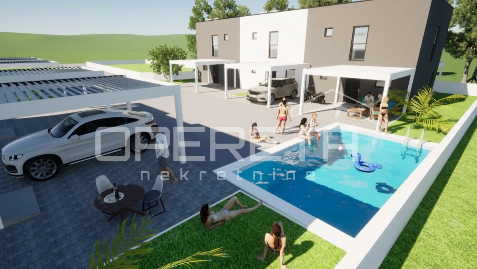 Prodaja, Kuća, Preko, Štrokova bb, Kuća u nizu, 106m2 Ekskluzivna luksuzna kuća u nizu, smještena na idealnoj lokaciji u mjestu Ugljan cca. 90 metara od mora i plaže s pogledom na iste. Jedan objekt s 2 kuće u nizu. Na istoj parceli predviđena su još 2 objekta od po 3 kuće u nizu. Ovo je objekt A s tri kuće, kuća 3. Vlastiti vrt i parkiralište za 2 automobila. Energetski certifikat A, koji garantira vrhunsku energetsku učinkovitost i uštedu energije, Prozori od PVC-a s troslojnim staklima i komarnicima, osiguravajući toplinsku i zvučnu izolaciju, Vrhunski moderni parketi u dnevnim i spavaćim prostorijama. Keramika i sanitarije renomiranih proizvođača, koje jamče eleganciju, trajnost i lako održavanje. Dodatan luksuz može se krojiti prema Vašim željama. projekt predviđa mogućnost gradnje privatnih bazena u sklopu nekih kuća ili gradnja zajedničkog bazena. Kupci imaju priliku realizirati opciju gradnje bazena prema vlastitim željama. Plan dovršetka 5. mjesec 2026. Moguća prodaja cijelog projekta. USLUGA KREDITNOG POSREDOVANJA: Opereta ekspert pruža besplatnu uslugu kreditnog posredovanja, uspoređujući ponude više banaka na jednom mjestu. Naš tim objašnjava sve opcije i vodi vas kroz cijeli proces – od konzultacija do isplate kredita, kako biste donijeli informiranu financijsku odluku i uštedjeli vrijeme.