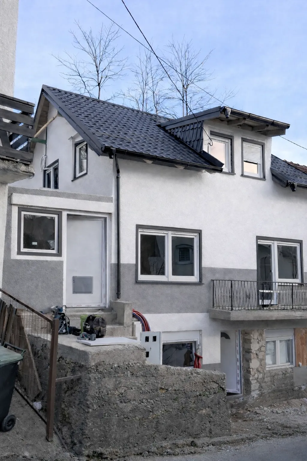 Kuča ima 3 odvojena sta sa svim priljucima vode struje . Dva stana su po 50m2 jedan je 35m2 plus balkon i terase