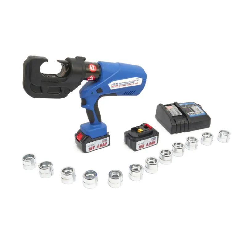 alat za stiskanje se isporučuje u kutiji u kojoj se matrice, punjač, druga baterija i alat za stiskanje udobno uklapaju i lako se nose sa sobom