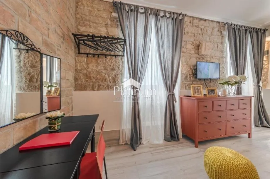 Prodaje se potpuno namješten stan u prizemlju zgrade, ukupne površine 59 m2, koji je uređen kao dvije samostalne stambene jedinice, odnosno dva studio apartmana. Stan se sastoji od ulaznog hodnika a svaka jedinica od dnevno spavaćeg dijela s kupaonom. Nalazi se u centru grad, u blizini svih sadržaja.