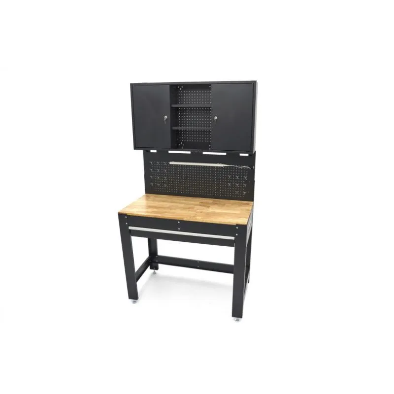 Ovaj elegantni radni stol s drvenom radnom pločom vrlo je prikladan i za profesionalnu i za hobi sobu "uradi sam".