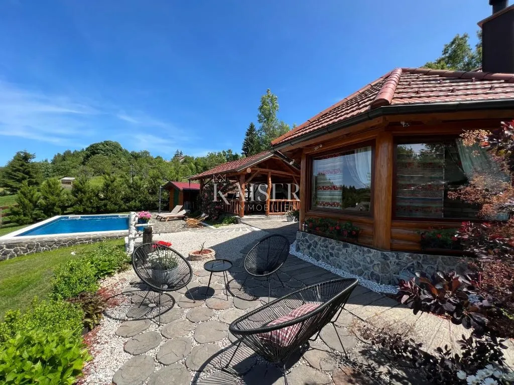 Kaiser Immobilien predstavlja jedinstvenu, autentičnu drvenu vilu smještenu na izdvojenoj, povišenoj lokaciji u mirnom naselju Gorskog kotara - Ravnoj Gori - Kupjaku, s koje se pruža panoramski pogled na šumske obronke i slovenske Alpe. Ova nekretnina nudi potpunu privatnost, tišinu i spoj luksuza s prirodom, idealna za odmor, obiteljski život ili turistički najam. Uređenje je ručni rad, a izrađena je od obnovljenih i recikliranih materijala – starih skija, zaprežnih kola, drvenih bačvi i starog željeza – čime se postiže jedinstven, održiv i umjetnički doživljaj prostora. • Ukupna površina zemljišta: 1.600 m² • Glavna kuća + samostalan wellness objekt + bazen + natkrivena terasa s roštiljem • Uredna dokumentacija Glavna kuća se sastoji od dvije etaže i to: Prizemlje se sastoji od prostranog dnevnog boravka s velikim prozorima i pogledom na prirodu, kuhinje i blagovaonice otvorenog koncepta, kupaonice, spavaća soba s bračnim krevetom i krevetom na kat, te prostorom za druženje / lounge zona Prvi kat se sastoji od galerije (mogućnost pregradnje u dodatnu sobu), spavaće sobe s bračnim krevetom, balkona s pogledom na šumu i zasebnog WC-a Wellness objekt se sastoji od dvije etaže: Prizemlje se od jacuzzi-a, tuša i garderobe, WC-a i velike klizne staklene stijene s izravnim izlazom na terasu s prekrasnim pogledom Prvi kat se sastoji od saune sa pogledom na prirodu – idealna za opuštanje i regeneraciju Vanjski prostor se sastoji od vanjskog bazena, velike natkrivene terase s roštiljem i uređenog dvorišta sa mogućnošću daljnje nadogradnje (vrt, dodatne terase, parking i sl.) Ova nekretnina ima podno grijanje na struju, kamin na drva, te Glamox grijalice kao dodatna opcija Dodatne mogućnosti: • Kupnja susjednog građevinskog zemljišta s kućom i dva pomoćna montažna objekta te 1.350 m² okućnice za 100.000,00e • Te dvije čestice je moguće kupiti samo uz kupnju ove nekretnine • Cijena: 730.000,00e + 100.000,00e Za sva pitanja slobodno kontaktirajte agente: Davor Piškulić davor@kaiser-immobilien.hr +00 385 95 583 8240 WhatsApp, Viber ID KOD AGENCIJE: 110-208 Davor Piškulić Agent s licencom u posredovanju u prometu nekretnina Mob: +385955838240, +385995677888 E-mail: davor@kaiser-immobilien.hr www.kaiser-immobilien.hr
