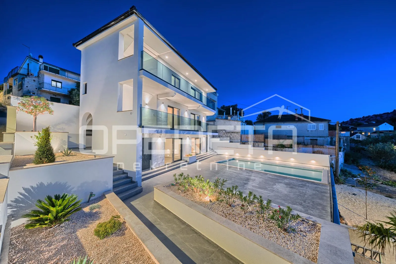 Ražanj - 1. red do mora - luksuzna vila useljiva i namještena Ražanj - Kad je adresa 1. red do mora - mjesto gdje Mediteran živi punim plućima U potpunosti namještena i odmah useljiva. Na samom rubu mora, ondje gdje završava kopno i počinje tišina valova, smjestila se vila koja nadilazi pojam nekretnine. U mirnom mjestu Ražanj, skrivenom dragulju Dalmacije, stvara se dom koji nije građen samo od betona i stakla, već od osjećaja, svjetla i prirode. Ova suvremena vila prostire se na tri etaže, pažljivo osmišljene kako bi svaki trenutak proveden u njoj bio ispunjen ugodom. Već pri ulasku osjeti se sklad između arhitekture i okoliša – otvoreni prostori, velike staklene površine i elegantni detalji stvaraju atmosferu lakoće i profinjenosti. Prizemlje pruža posebno mjesto za goste, s vlastitim apartmanom i terasom sa pogledom na predivnu uvalu, idealnom za prva jutra i tihe večeri. Središnji kat odiše toplinom doma. Prostor dnevnog boravka, blagovaonice i kuhinje povezan je u cjelinu, čineći dnevni život jednostavnim i ugodnim, dok pogled na more neprestano podsjeća na to gdje ste – u srcu Mediterana. Tu je i jedna spavaća soba s pripadajućim kupaonicama, diskretno smještena kako bi pružila privatnost bez gubitka povezanosti s ostatkom prostora. Na najvišoj etaži, intimnost je podignuta na višu razinu. Tri spavaće sobe s vlastitim kupaonicama pružaju mir i komfor, a terasa nudi prizore koje ne treba opisivati – treba ih doživjeti. Osjećaj luksuza ovdje nije nametljiv, već prirodan, kao produžetak mora koje vas okružuje. Vrt koji okružuje kuću pažljivo je uređen, bazen poziva na opuštanje, a svaki kutak vanjskog prostora pruža osjećaj sigurnosti, privatnosti i bezvremenskog odmora. Iako sklonjena od gužve, vila je dovoljno blizu svakodnevnim sadržajima – nečujno povezana sa svijetom, ali uvijek okrenuta prema tišini. Građena s posebnom pažnjom na dugovječnost i energetsku učinkovitost, ova kuća neće biti samo investicija – postat će dom. Prodaje se u potpunosti namještena, s pažljivo biranim komadima koji nadopunjuju prostor i pružaju osjećaj topline i elegancije uz dašak luksuza. Useljenje je planirano za ljeto 2025. godine, a već sada je jasno da ovakve prilike ne dolaze često. Ako ste ikada zamišljali život gdje vas budi miris mora, dan počinje na terasi s pogledom, a večer završava u tišini mediteranskog vrta – možda je vrijeme da toj mašti date adresu. USLUGA KREDITNOG POSREDOVANJA: Opereta ekspert pruža besplatnu uslugu kreditnog posredovanja, uspoređujući ponude više banaka na jednom mjestu. Naš tim objašnjava sve opcije i vodi vas kroz cijeli proces – od konzultacija do isplate kredita, kako biste donijeli informiranu financijsku odluku i uštedjeli vrijeme.