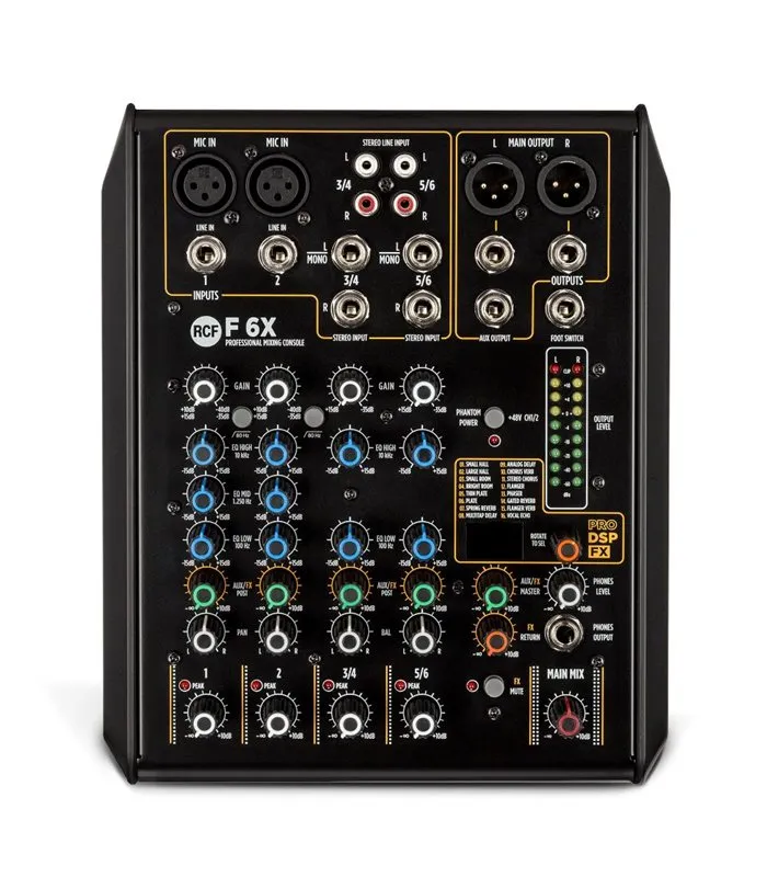 RCF-ova sljedeća generacija miksera serije F temelji se na bogatom analognom nasljeđu koje se nalazi u profesionalnoj seriji E, sa visokokvalitetnim zvukom u pet formata od 6 do 24 kanala. Snažan alat za glazbenike i entuzijaste dobrog zvuka, u potpunosti osmišljen i dizajniran od strane RCF R&D tima. Smješten u čvrsto metalno kućište, svaki mikser ima potpuno uravnotežen audio put od ulaza do izlaza i jedinstveni PRO DSP FX: 16 profesionalnih efekata kao što su Reverb (Hall, Room, Plate, Spring), Delay (Mono, Stereo i Multitap) , Chorus, Flanger i Echo.