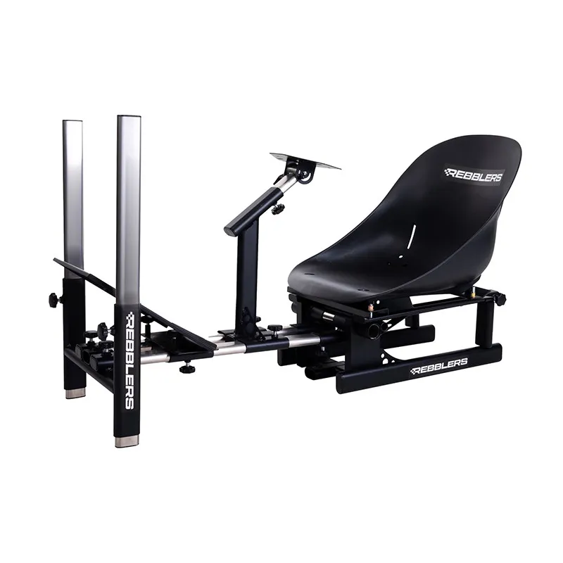 REBBLERS KART RACING SEAT je naš kompaktni trkaći simulator s "cool" KART sjedalom. REBBLERS KART je izuzetno kompaktan, koji ima mnoge prednosti kada je u pitanju skladištenje i koje nećete primijetiti dok se utrkujete. Bilo da želite uživati u reli utrkama ili utrkama formule 1, sve to možete učiniti uz REBBLERS KART! Zahvaljujući patentiranom sustavu, možete prilagoditi okvir u trenu. REBBLERS KART je izrađen od izdržljivih materijala kao što su aluminij i dvostruke vodeće cijevi od nehrđajućeg čelika, tako da je REBBLERS KART iznimno čvrst i stabilan. Klize na dvostruke cijevi od nehrđajućeg čelika i mogu se ručno pričvrstiti praktičnim zvjezdastim vijcima. Bilo koja marka volana može se montirati na stup upravljača, kao i klatne. Stup upravljača i pedale možete pričvrstiti pomoću sustava stezaljki ili vijaka. Kompatibilan je s npr. uz Thrustmaster, Hori, Fanatec, Logitech itd.